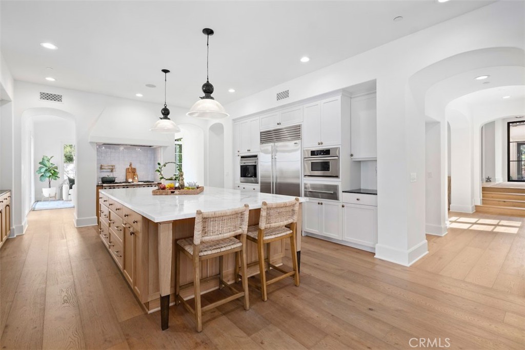 The five-bedroom, five-and-one-half-bath home has been thoughtfully transformed with refined finishes throughout, including warm hardwood flooring, curated designer lighting, elegant tile work, and detailed millwork that elevate every space.