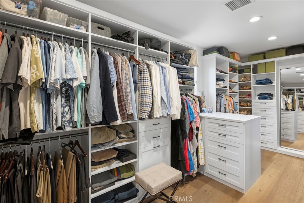 The primary suite occupies its own expansive private wing on the second level. A spa-inspired bath anchors the retreat, complemented by dual walk-in closets – one currently configured as a private office.