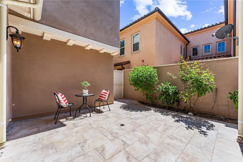 One of the BEST PRICED 2-LEVEL townhomes in Irvine! HIGHLY UPGRADED! ONLY ONE WALL ATTACHED, AND MOSTLY IN THE GARAGE! MELLO ROOS ONLY $1700/yr. Located on a QUIET interior street, this popular Monterey Plan 3 in Woodbury East displays architectural sophistication, highlighted by abundant windows and doors, an inviting front porch, & a charming courtyard. Adding to its curb appeal is a rarely seen upper deck that enhances the handsome front façade and distinctive architectural character. 3 bedrooms +a den/office with custom upgrades at every turn. As you enter, timeless staggered travertine flooring flows throughout the entire first floor. Brand-new carpet on the staircase and second floor. An expansive living room opens to a gourmet kitchen with a large central island. Situated at the heart of the home, the kitchen boasts granite countertops, a full backsplash with glass/natural stone mosaics, custom cabinetry with glass-paneled doors, under cabinet lights, and stainless steel appliances. New interior paint, including baseboards and walk-in pantry’s shelves. The spacious dining area features a sliding glass door, opening to an enchanting courtyard, beautifully landscaped with staggered tiles, mosaic accents, & fruit tree. The primary suite showcases a private deck and a luxurious ensuite bath, upgraded with marble countertops, a marble tub surround, and a walk-in shower. Mirrored closet doors & high-end built-in closet organizers in all 3 bedrooms. Whole house water softener/filtration system. Reverse osmosis under the kitchen sink. Instant hot water circulator under the primary bath’s sink. LED recessed lighting with dimmers in every room, plantation shutters, crown moldings, 2 NEST thermostats, & keyless entry for both the front and garage doors. The garage is fully finished with epoxy flooring, 50 amp-250V plug for EV, and custom cabinetry throughout—including built-in shoe shelves. Unwind on the covered deck after a long day, dine under the stars in the courtyard, or showcase your favorite flower pots on the welcoming front porch. World-class HOA amenities, including pools, spas, sport courts, a gym, clubhouse, tot lots, and more. The Monterey HOA not only maintains the landscaping, exterior paint, roof, balcony, and termite work, but also offers another pool/shaded kiddie pool and a playground within walking distance. Easy access to freeways and just minutes from Woodbury Town Center, the Great Park, Irvine Spectrum, and more.