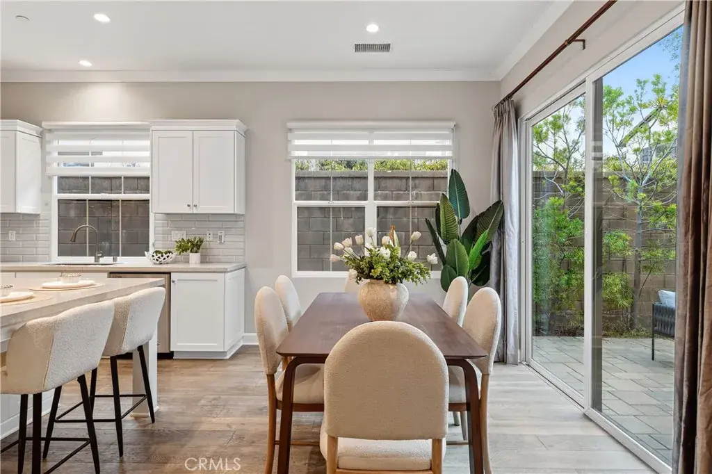 Beautiful home in Eastwood Village. This residence features a modern kitchen with sleek white cabinetry, a large center island, white Caesarstone countertops, and stainless steel appliances, including a refrigerator. The open-concept layout offers a spacious living room and a separate dining area. All new cabinet in full house.The home includes 4 bedrooms, highlighted by a generous primary suite with soaring ceilings and a large walk-in closet. The downstairs bedroom is comfortably sized. A full laundry room with a sink, washer, and dryer is also included. Convenient nearby parking! A community park, two pools, multiple BBQ areas, a basketball court, and tennis courts are just one block away. Zoned for top-rated Irvine schools and within walking distance of Eastwood Elementary. Close to grocery stores, shopping, restaurants, and bars.