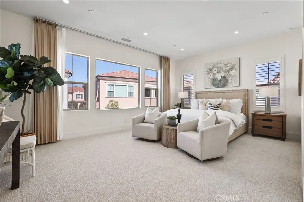 Your luxury residence is located in the prestigious Portola Springs community. With over $300,000 in upgrades, this move-in ready luxury home offers a resort-style backyard and a premium private, quiet location. This beautifully upgraded Cielo Plan 2 residence built by Shea Homes features a bright and airy open-concept floor plan with dramatic 20-foot ceilings. The spacious Great Room flows seamlessly into the dining area and gourmet kitchen, creating the perfect space for everyday living and entertaining. The first floor also includes a guest bedroom with a private bath and an additional powder room. The chef-inspired gourmet kitchen is equipped with Wolf and Sub-Zero stainless steel appliances, quartz countertops, designer backsplash, upgraded cabinetry, a walk-in pantry, and a large center island with seating. Upstairs, the grand primary suite features a luxurious bathroom and His and Hers walk-in closets. Two additional spacious en-suite bedrooms, a versatile loft, and a laundry room with sink and window complete the second level. The professionally landscaped backyard with fruit trees provides a peaceful setting for relaxation and entertaining. The two-car garage includes an EV charging outlet. Additional upgrades include 26 fully paid solar panels, motorized living room curtains, RH Light Fixtures, an automatic water softener system, and plantation shutters throughout. Residents of Portola Springs enjoy exceptional resort-style amenities including multiple Jr. Olympic pools, wading pools, parks with shade structures, playgrounds, BBQ and picnic areas, basketball, volleyball, tennis, and pickleball courts, scenic walking trails, and more. Portola Springs Community Park features a community center, lighted softball and soccer fields, and additional recreational facilities. Ideally located in Irvine, close to shopping, dining, major freeways, recreation, and top-rated schools.