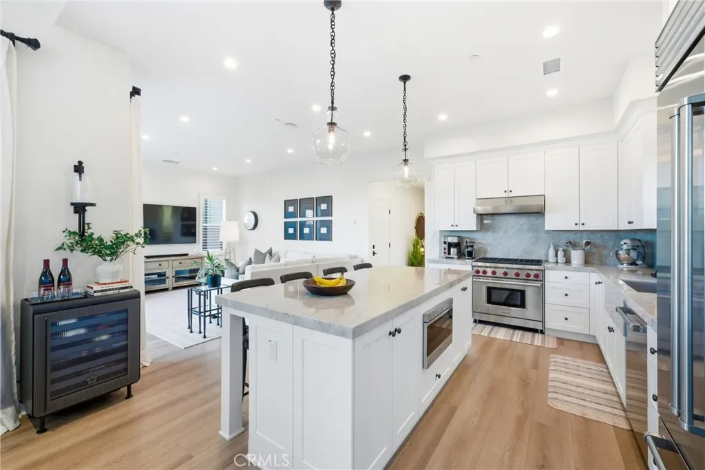 If you’re looking to call Portola Springs home and want a newer detached 3-bedroom residence, 109 Fairgreen stands out for all the right reasons. With sweeping mountain views, no neighbor on one side, and abundant natural light throughout, this home offers a rare combination of privacy, scenery, and thoughtful design that’s difficult to find among other homes currently available in the neighborhood. Inside, the home showcases wide-plank laminate flooring, recessed lighting, plantation shutters, custom designer drapery, upgraded fixtures and hardware, and a custom stair runner that adds warmth and character. The kitchen is the true centerpiece of the home, featuring stunning Taj Mahal quartzite surfaces that flow seamlessly across the countertops, backsplash, and into the bathrooms, paired with premium Wolf appliances, a 36-inch Sub-Zero refrigerator, and beautifully crafted cabinetry for a refined and timeless aesthetic. Upstairs, the primary suite feels like a private retreat, complete with a newly tiled spa-style shower, designer tile flooring, and elegant designer wallpaper. The secondary bathrooms continue the same elevated design with coordinating tile finishes and curated wallpaper selections, creating a cohesive, luxury feel throughout the home. Large panoramic sliding doors create effortless indoor-outdoor living and open to a professionally landscaped backyard overlooking Tomato Springs Park, where the mountain backdrop and open space provide both privacy and peaceful views. Additional upgrades include a finished garage with epoxy flooring, Tesla charger, overhead storage, full interior insulation, and paid-off solar panels, delivering both convenience and energy efficiency. Located in the highly desirable Portola Springs community, residents enjoy access to resort-style pools, parks, scenic trails, and top-rated Irvine Unified schools, making 109 Fairgreen an exceptional opportunity for those seeking comfort, style, and location in one of Irvine’s most sought-after neighborhoods.