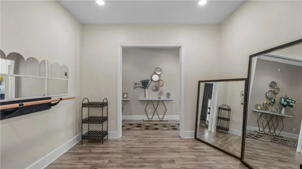 • One flexible room with in-wall French sliding doors—perfect for an office, piano room, or gym
