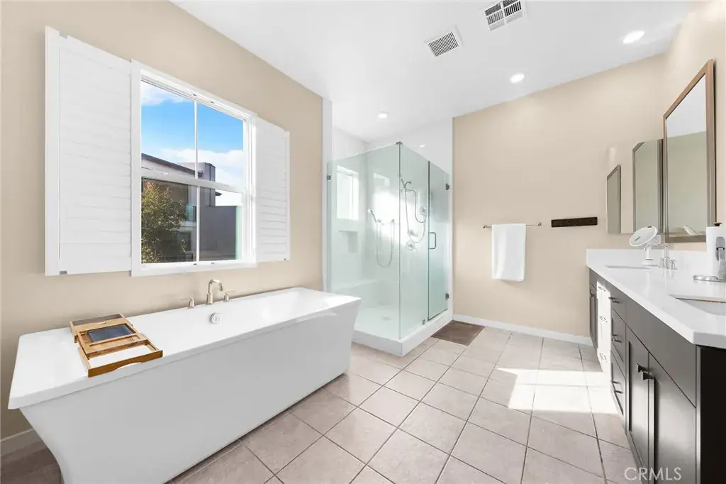 This Modern and Spacious End Unit Residence offers an exceptionally bright and open floor plan, enhanced by abundant natural light, soaring ceilings, and sleek contemporary finishes. The seamless layout connects the living, dining, and kitchen areas—perfect for both everyday living and entertaining. Built by Lennar in 2020 and meticulously maintained by the original owner, this home features 3 bedrooms and 3 bathrooms thoughtfully arranged within the main living area. A large Bonus Room on the top floor adds valuable flexibility—ideal for a home office, media room, gym, or playroom. Additional highlights include: Extra-large balconies on both the second and third floors, High-quality waterproof hardwood flooring, Central kitchen island, Two bathrooms with double sinks, Laundry room with sink and built-in cabinetry, Solar system, and Attached 2-car garage with direct access. Enjoy the oversized balcony with scenic views, perfectly designed as an extension of your indoor living space—ideal for outdoor relaxation or hosting guests. Residents enjoy resort-style community amenities including pickleball courts, pool & spa, fire pits, picnic and BBQ areas, playgrounds, dog parks, sport courts, biking trails, clubhouse, and more. Located in the desirable Great Park neighborhood, this home is just minutes from local parks and is walking distance to Cadence Park School, with convenient access to Irvine’s award-winning schools and community features. This is truly a lovely home—full of modern comfort and lifestyle appeal. Bring your imagination and make it yours! A must-see to appreciate!
