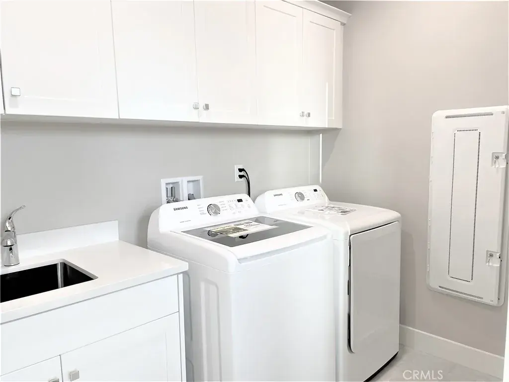The second floor features a spacious master suite and en-suite with dual vanity, soaking tub, rainfall shower, and large walk-in closet. Down the hallway with tall viewing windows that fills with natural light. A dedicated laundry room equipped with sink, washer/ dryer, and smart home hub. Two additional bedrooms and a full-size bathroom with dual vanity provide ample space for families during busy mornings.