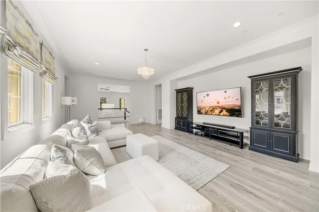 Upstairs, a generous loft and media room, anchors the upper level. The primary suite is a sanctuary unto itself, boasting a private balcony, refined coffered ceilings, a tranquil sitting retreat, a spa-inspired bath, and an expansive walk-in closet fit for royalty. Three additional en-suite bedrooms and a conveniently located laundry room complete the upper floor.