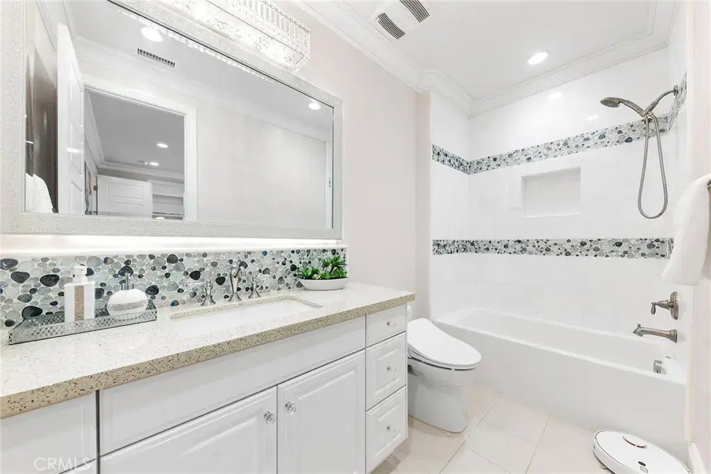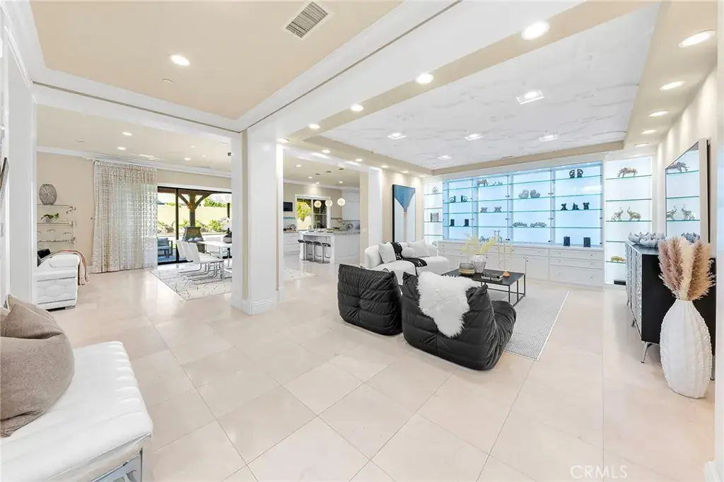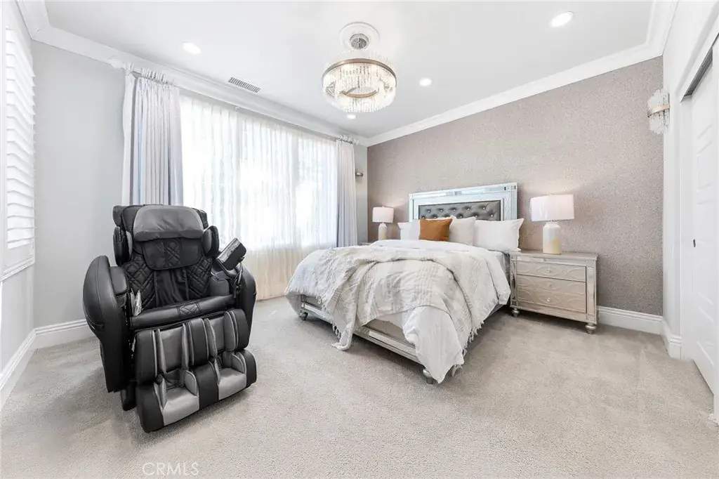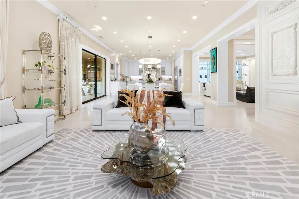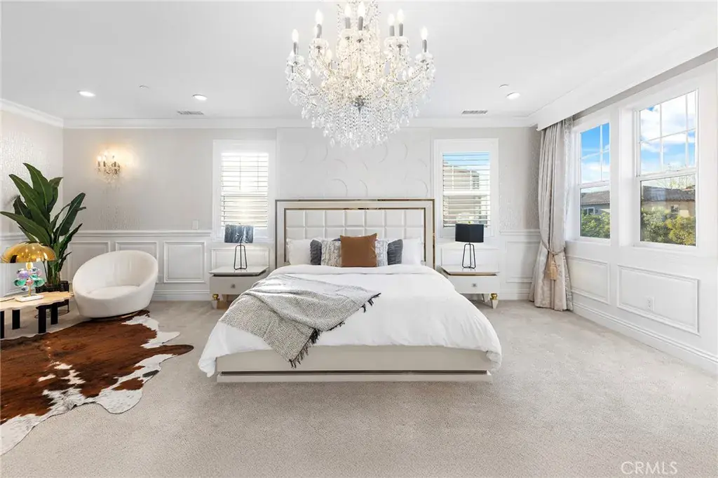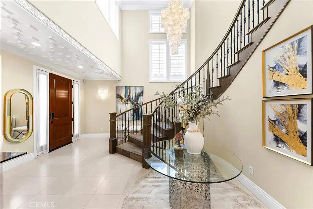 Professionally designed by renowned interior designer w/over $1.7 million in upgrades. Largest Model in the Community, the home boasts the most desirable open floor plan with Imported natural stone and upgraded carpet. Kitchen opens to expanded great room w/ adjoining dining area & family room w/ built-in cabinets and High-end appliances. Large center islands with gorgeous quartz counter tops make the kitchen a great place not only for cooking but also for family gatherings and entertaining friends. Main floor bedroom & full bath, marble fireplace mantels, Italian made family room TV cabinet and upstairs with hardwood floors. Spacious master suite plus three additional en-suite bedrooms and an upstairs laundry room for added convenience. Expansive, flat backyard — a rare gem in Irvine — ideal for outdoor living and entertaining. Enhanced by $300K in Feng Shui-inspired landscaping with thoughtfully selected plants to promote prosperity and harmonious energy flow. Upgrades throughout include: Custom backsplash, Quartz Countertops, Subzero Refrigerator in Kitchen. Soundproof Media Room. Decorative wall panels in Great Room, inspired by Italian interior design. Marble Fireplace Mantle in Master Bedroom. Custom luxury furniture and draperies, transitional shades remote control for high ceiling & wood shutters. Custom 3D leather panels and wainscoting for Master Bedroom. Hydro massage walk in shower in Master Bathroom. Custom Wallpaper in every room. Crystal knobs for kitchen cabinets, Dining Room & Downstair Bathroom. Toto bidets in Master Bathroom. High-end European-imported crystal chandeliers and pendant lights, worth of 100k. Minutes from park/ pool, the newest shopping plaza The Canopy and award-winning Irvine schools.