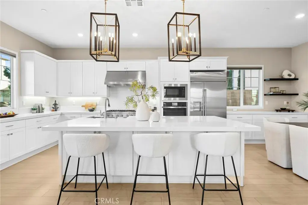 Our RARE Premier Encore Collection Residence 3 home built by Lennar is situated on a CORNER LOT PREMIUM with City Light & Mountain Views! This Contemporary Retreat offers 4BD (ONE MAIN LEVEL) 4BA (ONE MAIN LEVEL), plus a Second Level Den, Third level BONUS Room, Third Level Deck, Private Patio, and approximately 3,170 Sq. Ft of Decadent Interior Living Space! The home features the Finest Interior Elements including an Open Floor Plan, High Ceilings, Luxury Vinyl Plank Flooring, Custom Fitted Window Shades, LED Recessed Lighting, Solar Panels, and ATTACHED 2-CAR Garage! Chef-Inspired Gourmet Kitchen with Quartz Countertops & Backsplash, White Shaker Door Cabinetry, Expansive Kitchen Island, and ALL Stainless-Steel Appliances! A Lifestyle Opportunity for Indoor/Outdoor Entertaining—DUAL Outdoor Living Spaces! Pocket Door Access to Private Patio with Artificial Turf + 3rd Level Deck! Enjoy World-Class Amenities—exclusive to Great Park residents. Parks, pools, Barbecue and Picnic Areas, Sport Court, and Walking/Biking Trails all inspired by the warm ambiance of their surrounding environment. Award-winning Irvine Unified School District (zoned Portola High & Cadence K-8) and minutes from Dining Destinations at Woodbury Shopping Center, Irvine Spectrum Center, Kaiser Permanente, John Wayne Airport, and 133 & 241 Toll Roads!