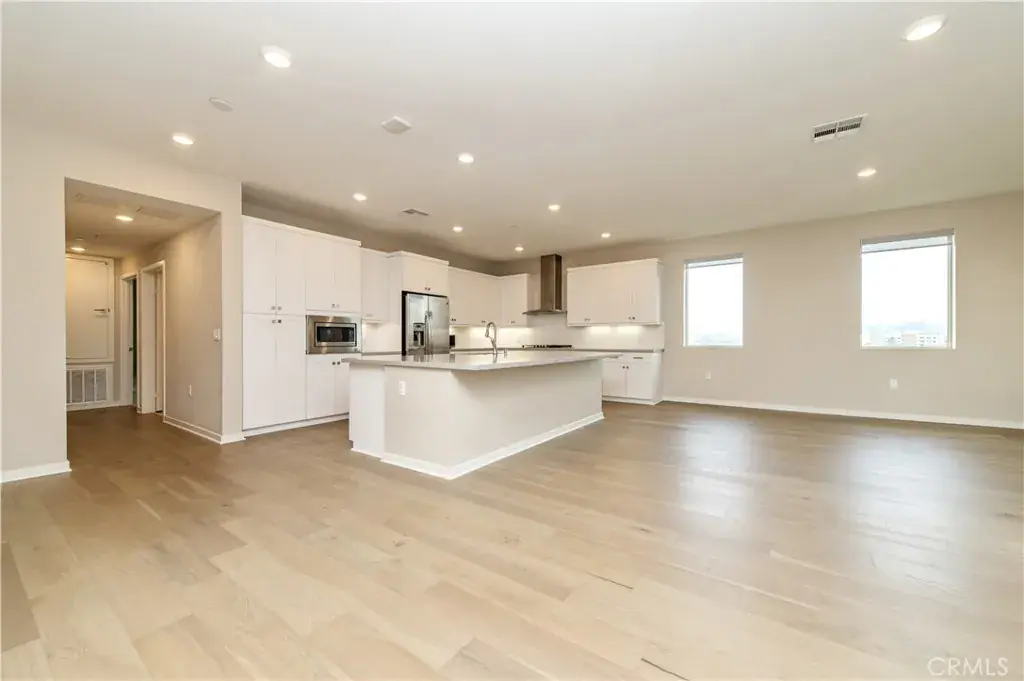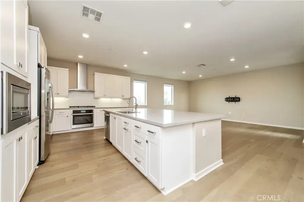Experience contemporary elegance in this top-floor, exceptionally spacious 2-bedroom, 2-bath condominium situated in the vibrant heart of Irvine’s financial district. The open floor plan features a generous family great room that extends to a large private balcony, providing picturesque views of the lush courtyard. The gourmet kitchen boasts a sizable quartz-topped island, upscale stainless steel appliances, and ample cabinetry for all your storage needs. A conveniently located laundry closet includes a washer and dryer. The unit showcases designer-selected laminated wood flooring in the living areas and upgraded carpeting in the bedrooms. Both the master and secondary bedrooms offer their own en-suite bathrooms for added convenience. The property includes a private tandem two-car garage on the first level, equipped with an EV charging outlet to accommodate electric vehicles. Residents of Central Park West enjoy resort-style amenities such as a clubhouse, state-of-the-art fitness center, outdoor spa, yoga studio, pools, as well as outdoor sports parks, playgrounds, and pickleball courts. The location provides exceptional connectivity, with easy access to I-405 and proximity to premier shopping and entertainment destinations including Newport Beach’s Fashion Island, Irvine Spectrum, South Coast Plaza, and Laguna Beach.