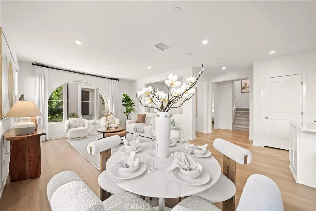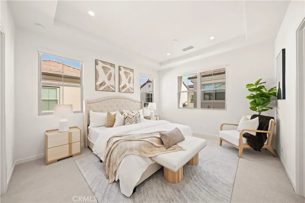 Experience modern living in this beautifully UPGRADED 4 BEDROOMS 4 FULL BATHROOMS home offers a thoughtfully designed layout (EACH BEDROOM PAIRED WITH A FULL BATHROOM) that provides both flexibility and privacy rarely found in the esteemed Portola Springs community. The highly desirable floor plan includes MAIN FLOOR BEDROOM WITH FULL BATH, perfect for guests, extended family, or a private home office. Positioned as a CORNER UNIT, the home enjoys enhanced separation and privacy, with THREE OF THE BEDROOMS SITUATED WITHOUT SHARED WALLS WITH NEIGHBORS — an uncommon feature that adds to the home’s quiet and comfortable feel. A welcoming entry leads into a light-filled OPEN FLOOR PLAN featuring warm-toned vinyl flooring on the main level, upgraded carpeting upstairs, RECESSED LIGHTING & DUAL SHEER SHADES THROUGHOUT. The great room flows beautifully into the dining area and a thoughtfully designed kitchen, complete with a cozy island, quartz countertop, FULL HEIGHT QUARTZ BACKSPLASH, under cabinet task lighting. Upstairs, the primary suite becomes a personal sanctuary, showcasing a freestanding soaking tub, sleek dual vanities, and a walk-in shower that exudes spa-level sophistication. TWO ADDITIONAL BEDROOMS ARE EN-SUITE, EACH WITH ITS OWN PRIVATE BATHROOM, offering privacy and comfort for family and guests alike. Plus a convenient SEPARATE LAUNDRY ROOM WITH SINK & CABINETS complete the second level. High-efficiency upgrades including PAID OFF SOLAR PANELS. JUST STEPS AWAY FROM THE COMMUNITY MONARCH PARK, HILLCREST PARK, HIGHLAND PARK & PORTOLA SPRINGS COMMUNITY CENTER. Located within the highly acclaimed Irvine Unified School District, and just minutes drive to the brand new Loma Ridge Elementary School, and zoned for top rated Portola Springs High School, this home offers not only beauty and comfort but also top-tier educational access. Residents of Portola Springs enjoy access to 15+ amenity-rich parks, scenic walking trails, resort-style pools, pickleball and sports courts, and playgrounds—all moments from home. Easy access to highways 133, 241, and I-5.