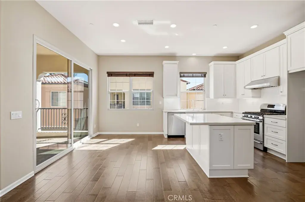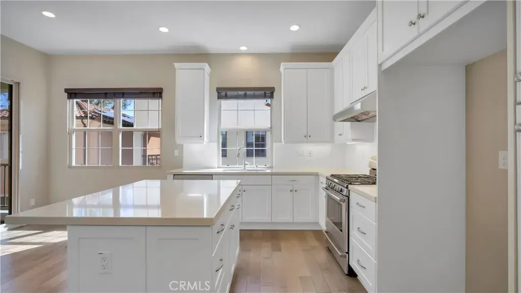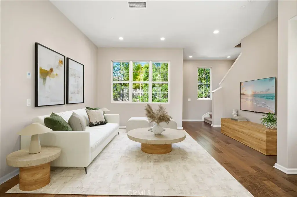 DETACHED HOME ON A PREMIUM LOT tucked quietly within Luna at Portola Springs, with over 1,500 sqft of living space offers the kind of privacy that is hard to find. With no neighbors directly in front of the unit, your view opens to lush greenery instead of another front door. It feels calm, private, and intentionally positioned. As you step inside, you immediately notice the warmth of hardwood floors at the entry. The main level features a junior suite with its own ensuite bath, ideal for guests, extended family, or even a quiet home office. It provides separation while still feeling connected to the rest of the home. Upstairs, the second floor becomes the heart of daily living. Designed with a true great room layout, the living, dining, and kitchen spaces flow seamlessly together. Natural light fills the room, and from the living area you look out to mature landscaping rather than neighboring windows. It is bright, open, and easy to live in. The kitchen is timeless and functional with white shaker cabinetry, quartz countertops, and a generous center island with counter seating. Under cabinet lighting adds a soft glow in the evenings, and upgraded Bosch appliances elevate everyday cooking. Just off the dining area, a private patio creates the perfect extension of the space, whether it is morning coffee or winding down at the end of the day. On the third level, you will find two additional ensuite bedrooms, including a spacious primary suite with a walk in closet and peaceful views of greenery. It feels tucked away and elevated, like your own private retreat. The additional guest suite on this level is naturally well lit with mountain views and generously sized, offering flexibility for family or visitors. Living in Portola Springs means embracing a true resort style lifestyle. Residents enjoy 19+ parks, 12 pools including Olympic and Jr Olympic pools, 4 clubhouses, sport courts, tennis and pickleball courts, scenic trails, tot lots, and BBQ and picnic areas. It is a neighborhood designed around connection and the outdoors. Families are drawn to the highly regarded Irvine Unified School District, and the location places you just minutes from Woodbury Town Center, Orange County Great Park, and Irvine Spectrum Center for dining, shopping, and entertainment. 142 Firefly is not just another Irvine home. It is privacy, thoughtful design, and the best of Irvine living, all in one beautifully positioned address.