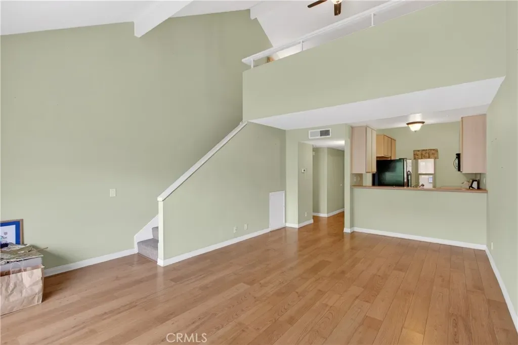 One bedroom AND LOFT upper unit condo is conveniently located near Irvine Valley College. This home features a spacious living and dining area with soaring ceilings and a sliding door opening to the private deck. The kitchen opens to the living area and comes with a refrigerator and Bosch dishwasher. There is a spacious primary bedroom with lots of closet space and more additional closet space in the hallway. The bathroom features an enclosed tub/shower. A roomy loft is perfect for a home office, guest retreat, exercise area or any number of uses. Additional storage was added under staircase and off loft, so there is lots of room for belongings! The property has an interior washer & dryer that are included in the sale. An assigned carport is nearby the property and there are numerous unassigned parking spots for visitors. Meandering streams throughout the complex make for a peaceful & serene environment. HOA fees include water, trash and exterior maintenance. The neighborhood is currently undergoing wood repairs, maintenance & painting, but the building this unit is located in has already been completed. Probate sale, peaceful death on the property. Property is being sold AS IS, full authority probate.
