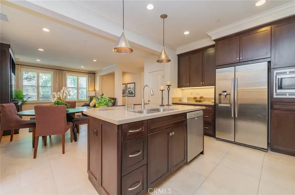 Discover a beautifully curated living experience in this rare Former Model Home, offered FULLY FURNISHED with custom-built furniture and designer-selected accents throughout. Because this was a showcase unit, it features professional interior touches, custom cabinetry, and lighting upgrades that provide a cohesive, high-end feel. The versatile 3-bedroom, 3-bathroom layout includes a highly desirable downstairs bedroom and full bathroom, perfect for guests, multi-generational living, or a quiet home office. The open-concept main floor seamlessly connects the kitchen and living areas, creating an inviting space for daily life. Perfectly positioned for convenience, this home is just steps away from a lush neighborhood park and a top-rated Irvine elementary school. Commuters will appreciate the effortless access to Highway 5, while nearby shopping centers and supermarkets make errands a breeze. This is an incredible opportunity for a buyer looking for a designer-styled, “turnkey” transition in the heart of Irvine. Simply move in and enjoy the curated style and unbeatable location of this exceptional residence.