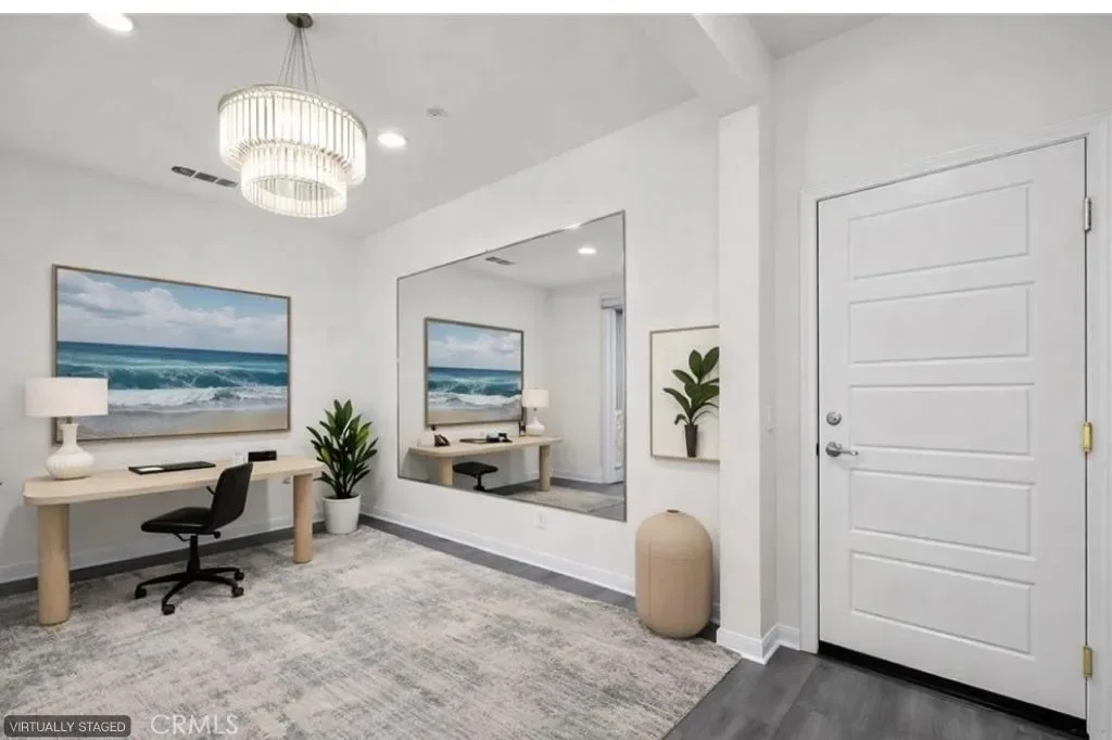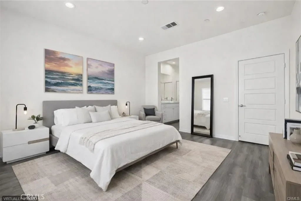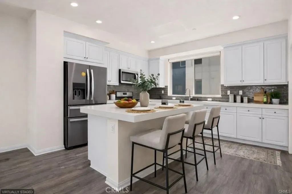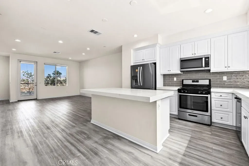 Located in the Paseo Del Mar community within the Irvine Business Complex, this tri-level home built in 2021 offers modern construction and low-maintenance living with no Mello Roos. The main living level features an open-concept layout with a living and dining area that connects to a private balcony, providing indoor-outdoor functionality. The kitchen includes quartz countertops, stainless steel appliances, a center island, soft-close cabinetry, and a walk-in pantry.