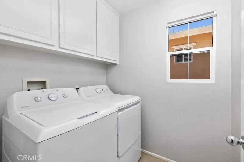 The upstairs laundry room accommodates a side-by-side washer and dryer. The two-car garage offers side-by-side parking with direct access to the interior.