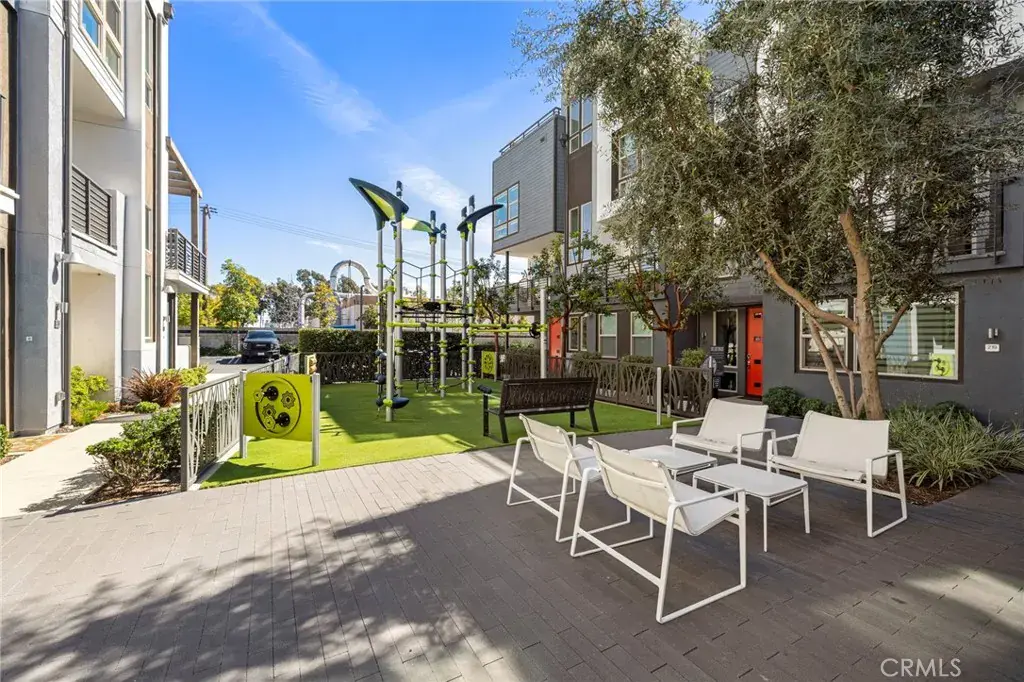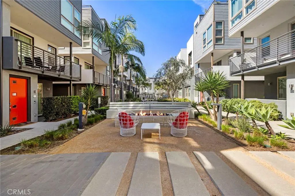 The top-level rooftop deck offers a rare and versatile outdoor living space, perfect for entertaining, unwinding, or enjoying sunset views. Additional outdoor spaces in the community include a pool, spa, outdoor fireplaces, clubhouse, bocce court, BBQ areas and tot lot.