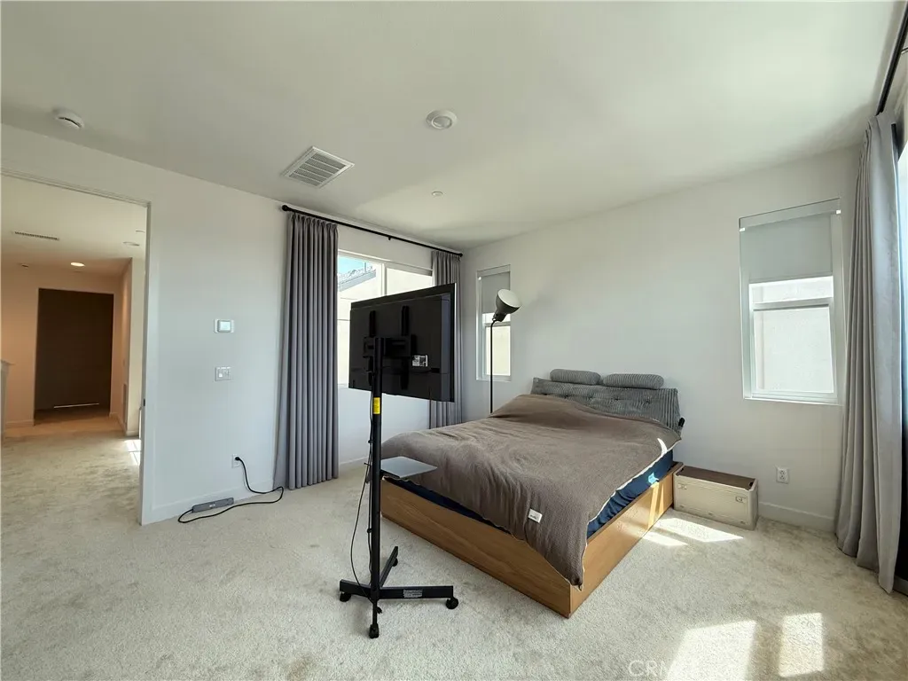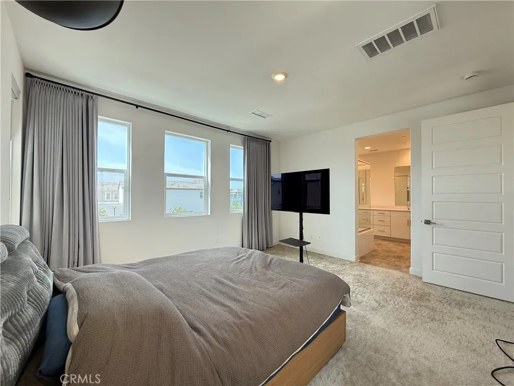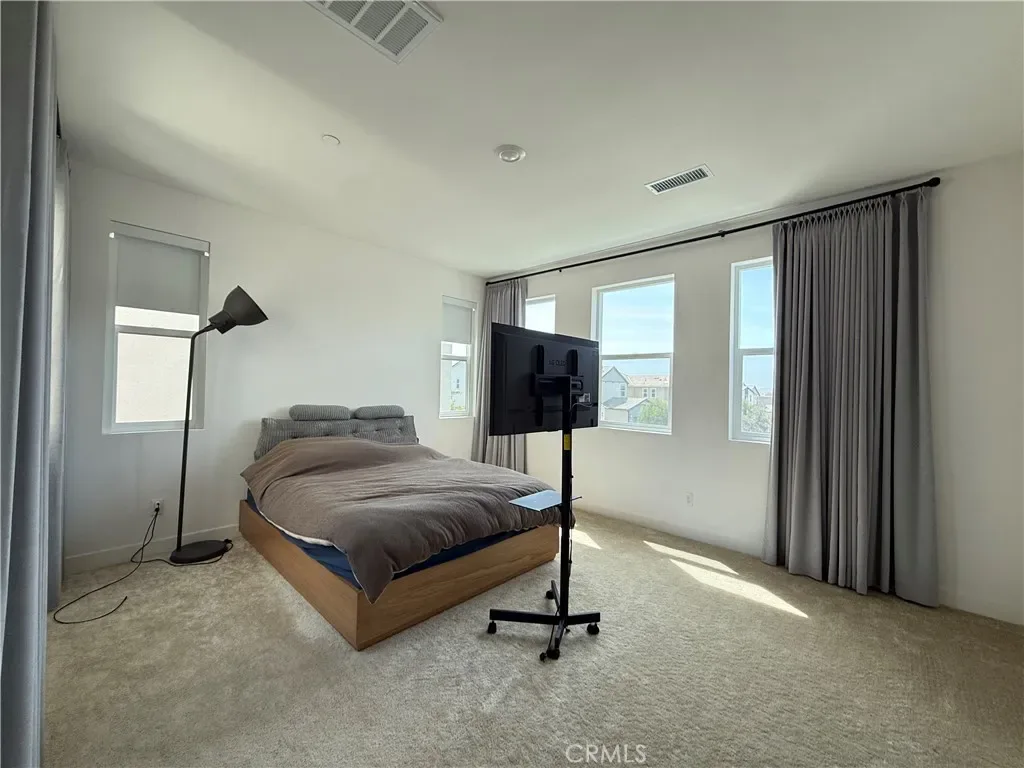 Ideally situated in the vibrant heart of Solis Park, this gorgeous detached 3-bedroom residence is just steps away from the playground, clubhouse, pool, and other fantastic community amenities. Convenient street parking with enhanced lighting adds to the appeal. Inside, the sleek, modern kitchen boasts upgraded appliances and soft-close cabinetry, seamlessly flowing into a spacious living/family room that extends to a private side yard. New luxury vinyl flooring graces the first floor. Upstairs, the luxurious primary suite offers a spa-inspired bathroom with a double vanity and oversized walk-in shower. Two generously-sized secondary bedrooms, a cozy loft, and a laundry room with a sink complete the second floor. The third floor features a versatile bonus room that can serve as a fourth bedroom or playroom, and opens onto an expansive deck with breathtaking panoramic mountain views. Abundant windows throughout flood the home with natural light, while fully paid-off solar panels enhance energy efficiency and add long-term value. Within walking distance to the highly-rated Solis Park School (K-8) and Portola High School, this home embodies resort-style living in the prestigious Great Park Neighborhoods. Enjoy easy access to major freeways, the Great Park Ice Rink, sports complex, and Wild Rivers Water Park.