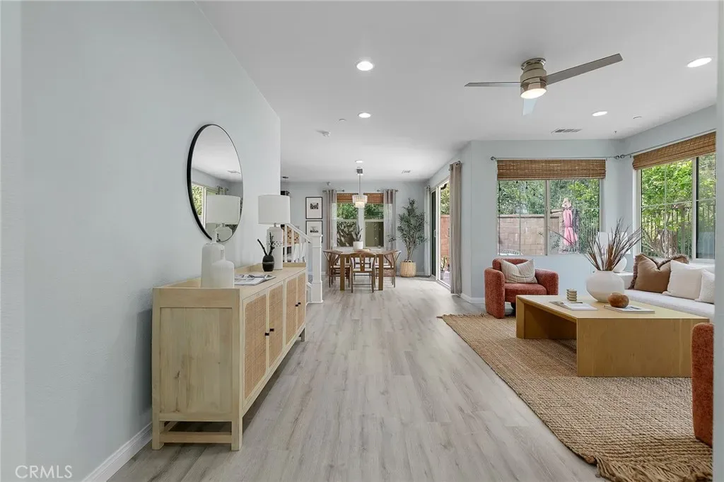 Welcome to refined living in the highly sought-after Portola Springs community of Irvine. This beautifully maintained detached end-unit home, built in 2015, offers approximately 1,996 square feet of thoughtfully designed living space that blends comfort, style, and everyday functionality. The main level features a private bedroom and full bathroom, ideal for guests, extended family, or flexible living arrangements. Upstairs, the expansive primary suite serves as a peaceful retreat with a generous walk-in closet and a spa-inspired bathroom complete with dual vanities, a soaking tub, and a separate walk-in shower. Two additional bedrooms and a full bathroom provide plenty of space for family, guests, or a home office. The open-concept living area is filled with natural light and flows seamlessly between the living room, dining space, and kitchen—creating the perfect setting for both daily living and entertaining. Step outside to a private backyard with side-gate access, offering a charming space to relax or host gatherings. Additional highlights include direct access to a two-car garage and a location just moments from the community pool. Residents of Portola Springs enjoy exceptional resort-style amenities, including scenic walking and biking trails, parks, tennis and basketball courts, and access to the highly acclaimed Irvine Unified School District, with Portola Springs Elementary within walking distance. Ideally situated near Woodbury Town Center, Irvine Spectrum, Great Park Sports Complex, and the upcoming Canopy development, this home offers the perfect balance of luxury, convenience, and vibrant community living.