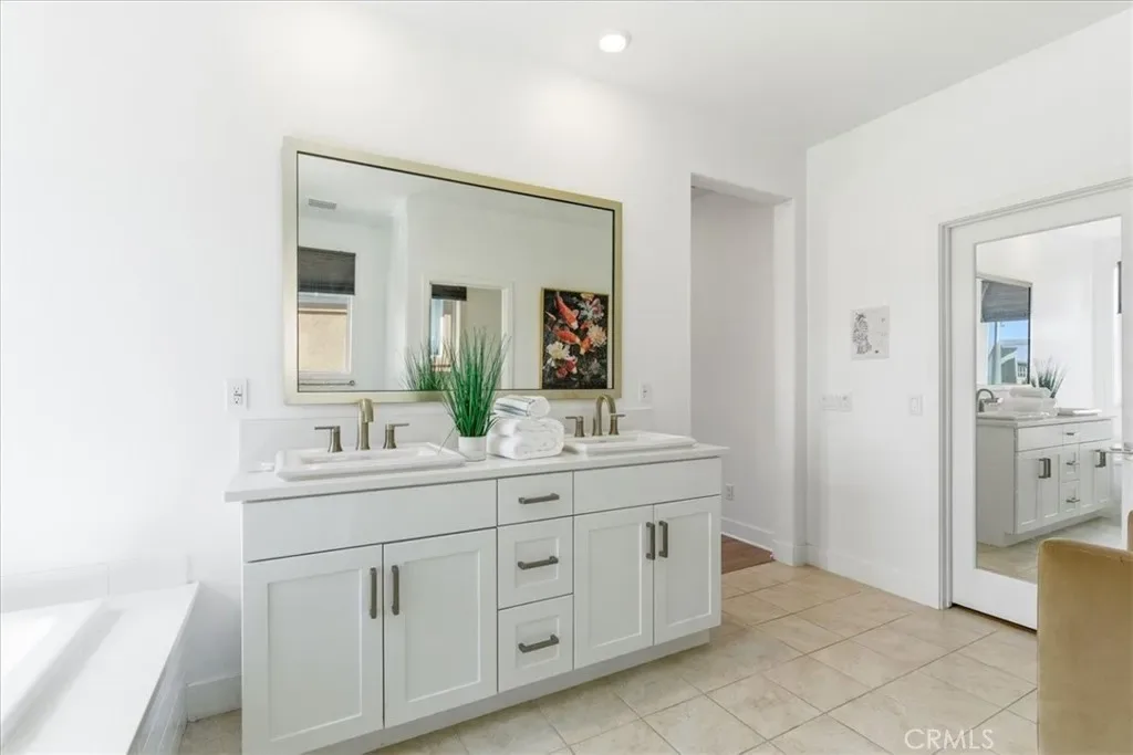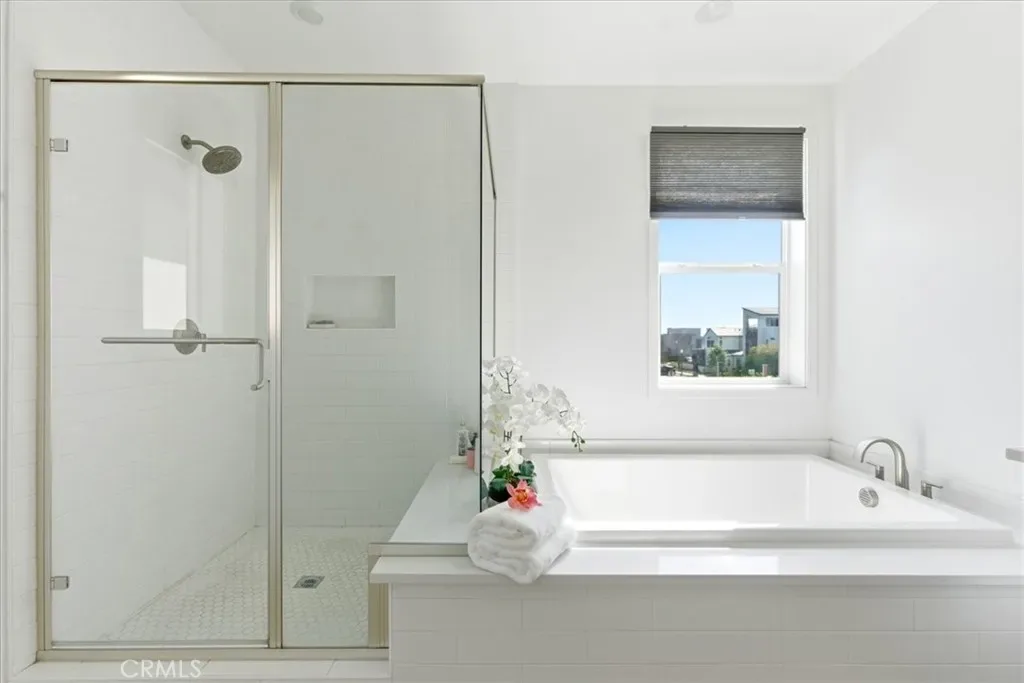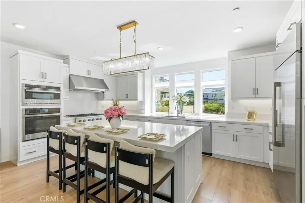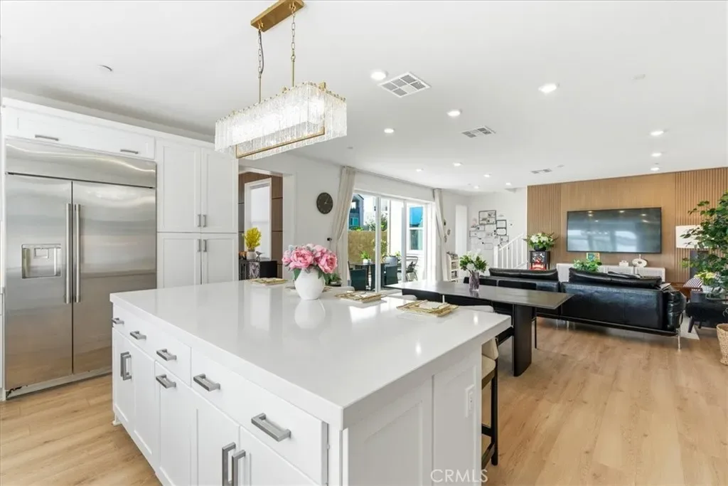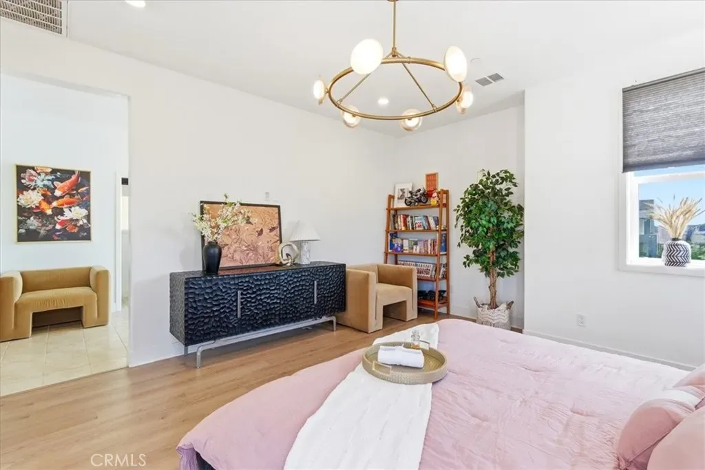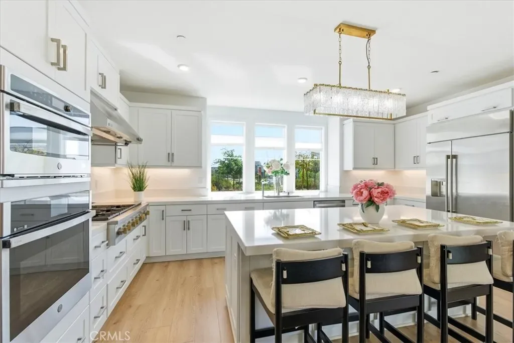 Welcome to this beautiful, new detached home in the Great Park Neighborhoods. This home stands out with its premium corner location, giving you extra privacy and a serene feel with views of the greenbelt. As you step inside, you’ll find an expansive open-concept great room with luxury vinyl flooring and recessed lighting throughout. The kitchen is a chef’s dream, featuring a large island, quartz countertops, and stainless steel appliances, including a built-in refrigerator. All cabinets have soft-close drawers and doors, adding a touch of elegance. Upstairs, the spacious loft has been enclosed, offering a versatile space that can be used as an extra bedroom. You’ll also find two additional guest bedrooms, a separate laundry room, and a full secondary bathroom on this level. The primary bedroom suite is large and inviting, complete with an impressively sized closet and a luxurious bathroom with a separate soaking tub and shower. This home is equipped with modern conveniences like solar panels, electric car chargers, a smart lock, and a Wi-Fi garage opener. A rare two-car garage and driveway provide ample parking, along with two private side yards for outdoor enjoyment. Living here means you’ll have access to the community’s rich amenities, including a pool, parks, playgrounds, and sports courts. The community also features dog parks, picnic areas, splash parks, and extensive greenbelts and trails for outdoor recreation. Enjoy convenient access to shopping and dining at nearby locations like Woodbury Town Center and Irvine Spectrum.
