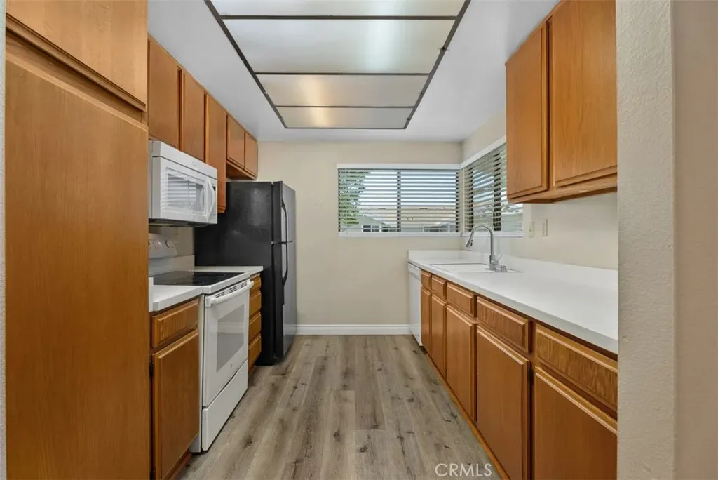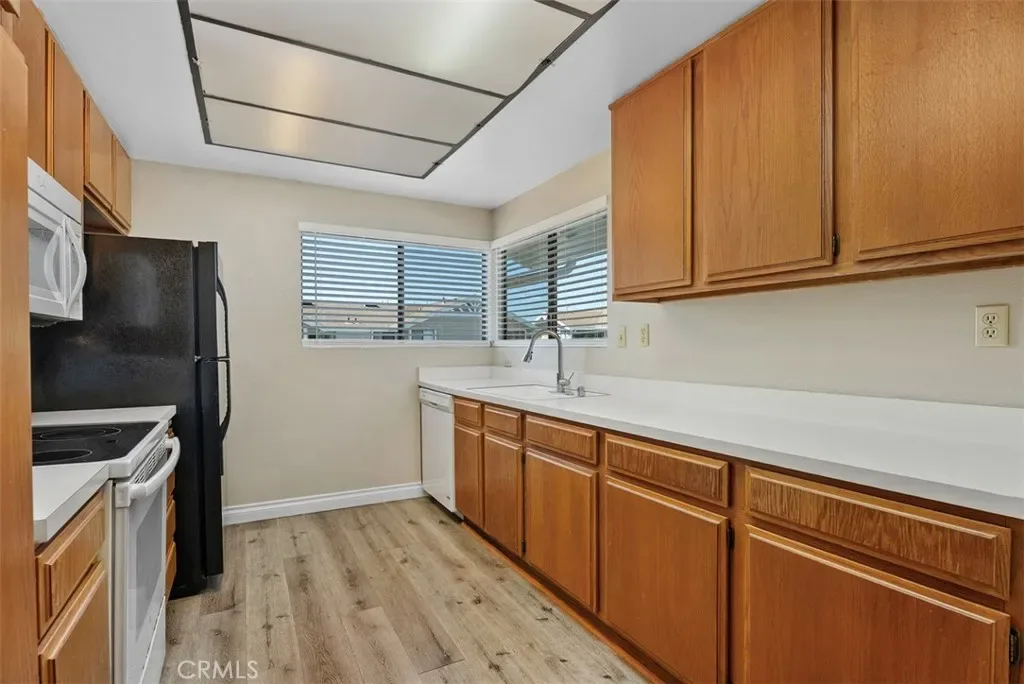 Light-filled 2-bedroom, 2-bath home for lease in Irvine’s Orangetree neighborhood. This upper-level residence offers a spacious living and dining area, updated flooring, abundant natural light, and a private balcony for outdoor enjoyment. The functional kitchen features ample cabinet and counter space, and the home includes a refrigerator plus in-home washer and dryer for added convenience. Community amenities include a pool, spa, and covered parking.