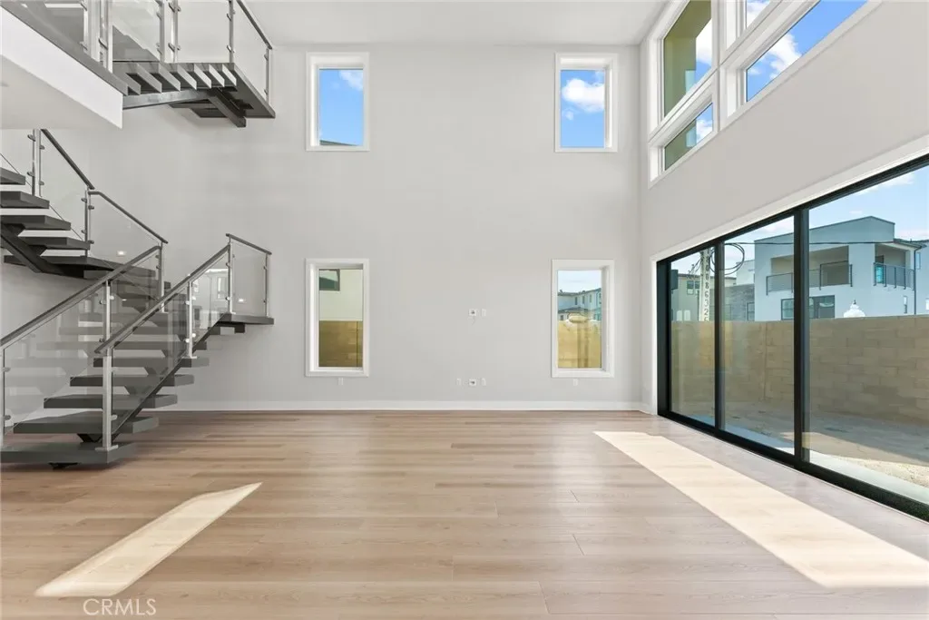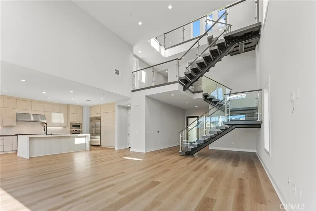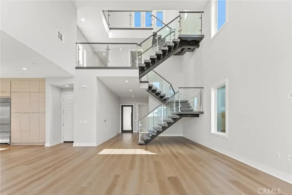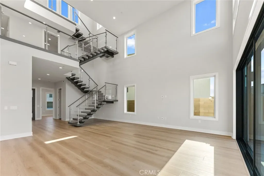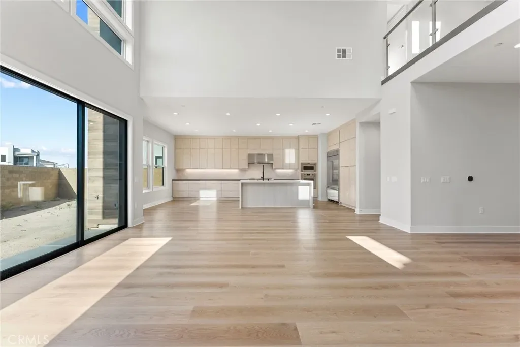The thoughtfully designed three-level layout features 5 bedrooms and 5 bathrooms, enhanced by extensive builder upgrades and refined designer finishes throughout. The main level is highlighted by a dramatic two-story great room with an open-concept living, dining, and gourmet kitchen layout. The kitchen includes a spacious center island, quartz countertops, upgraded cabinetry, and carefully selected finishes. A multi-slide stackable glass door provides seamless indoor-outdoor flow.