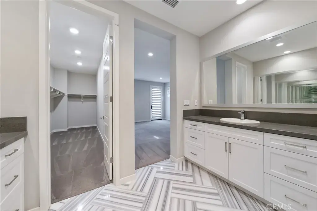 WELCOME TO THIS BEAUTIFUL HOME IN THE HIGHLY DESIRABLE GREAT PARK COMMUNITY! Step inside and immediately notice the open and airy living spaces, highlighted by a multitude of large windows for exceptional natural light. Feature a contemporary style, the entire home has been thoughtfully considered. The open-concept mean living space features plenty of modern touches such as recessed lighting, vinyl wood flooring and a chef inspired kitchen that overlooks the living and dining areas with a private back patio space, perfect when entertaining guests and al-fresco dining. The kitchen features a large island, sleek quartz countertops, professional-grade stainless steel appliances and and abundance of cabinetry. On the first floor includes the 1st sizeable bedroom and bathroom perfect for a home office or flex space. The second floor features the 2 additional bedrooms and a separate laundry room. The primary suite has it’s own wing with a stand-alone shower, dual vanity sinks, a walk-in closet and a separate balcony that offers views of the serene neighborhood. Attached, two-car garage with direct access. The community features resort-like amenities including Olympic sized pools, 6 parks, biking and walking trails, playground, BBQ, picnic areas, recreation centers and courts and more! Conveniently located near many restaurants, markets, shopping centers, retail and easy access to the 5 freeways.