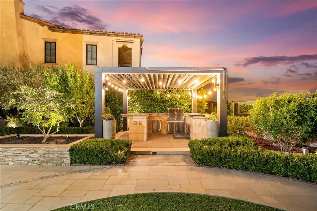 Welcome to Bella Vista in Orchard Hills, Irvine – an exclusive enclave where sophistication meets comfort. This 5-bedroom, 5.5-bathroom estate spans approx. 4,884 sqft and showcases luxury design, modern upgrades, and smart-home convenience in a prime guard-gated community. From the moment you arrive, the home’s presence is undeniable. An extended driveway accommodates up to six vehicles, leading to a 3-car garage. Inside, a grand foyer welcomes you with soaring ceilings, upgraded marble flooring, and a striking mosaic design. A sweeping staircase and rich wood flooring set a warm yet refined tone that flows throughout the home. At the heart of the residence lies a chef’s kitchen designed for culinary excellence. outfitted with quartz countertops, Sub-Zero refrigeration, Wolf appliances, Bosch dishwasher, wine fridge, farmhouse sink, and oversized island, it is as functional as it is stylish. A butler’s pantry and walk-in pantry provide ample storage, while the open-concept design connects seamlessly to the great room, dining area, and nook-perfect for entertaining. The main level also features a private guest suite with ensuite bath and access to a serene outdoor patio. Upstairs, a spacious loft opens to a balcony with upgraded flooring and sweeping city light views. The primary suite is a true retreat. Enter through a medallion marble foyer into a space enhanced by a see-through fireplace and a California closet walk-in wardrobe. The spa-like bathroom, marble flooring and walls, a freestanding Soaking tub, and an oversized walk-in shower. Two additional ensuite bedrooms and converted office with premium California Closet built-ins provide comfortable private spaces. Designed for outdoor living, the backyard is an entertainer’s dream. A California-style outdoor room with electronic shade. a built-in barbecue station with cooktop, fridge, sink, and beverage drawers, plus a gazebo and fountain, create the perfect gathering space. Lush landscaping and fruit trees complete this private retreat. Modern convenience include a Control4 smart home system. owned solar. soft water system, hunter-Douglas wood shutters. Ethan Allen draperies. With top-rated restaurants, Asian market, and shopping within walking distance, plus resort-style community amenities, this home offers elegance, comfort, and lifestyle in one of Irvine’s most desirable neighborhoods.https://vimeo.com/1119817919