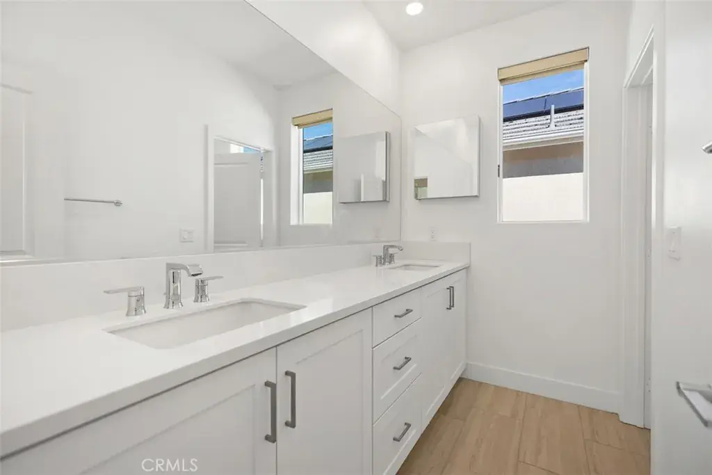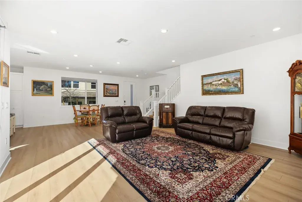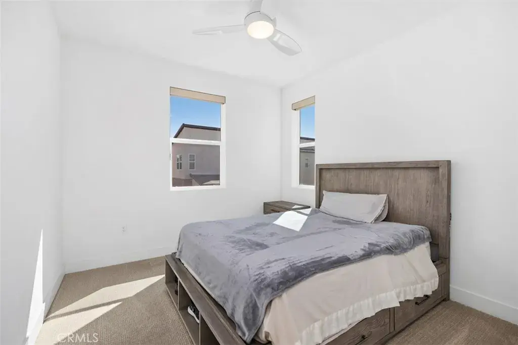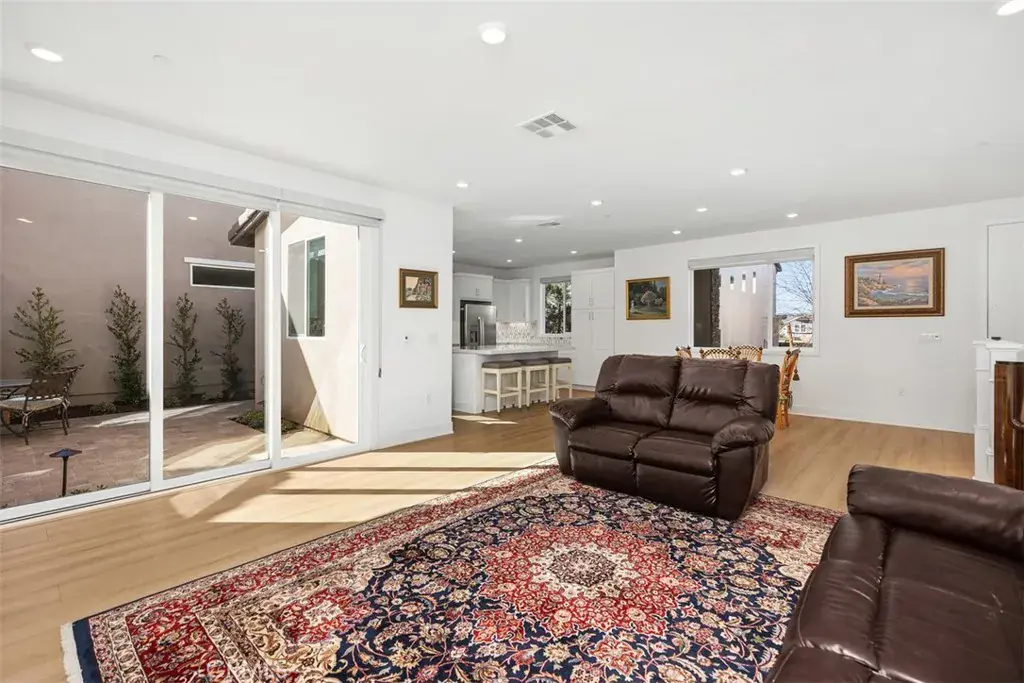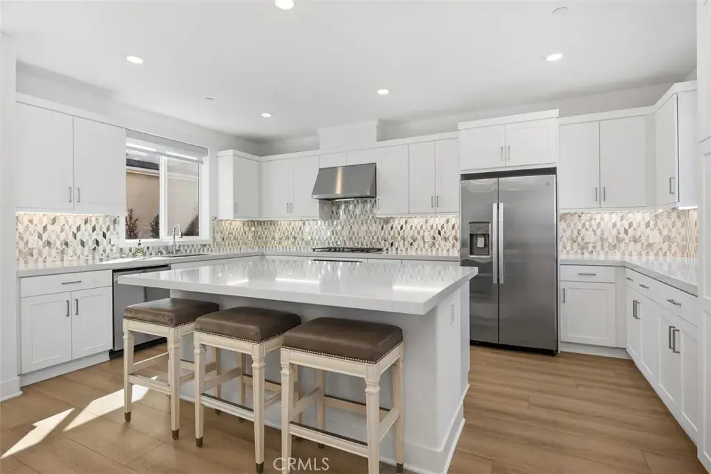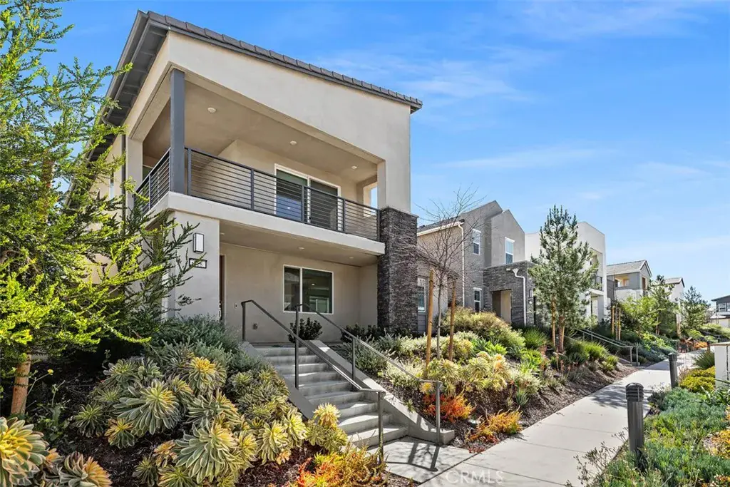 Discover the pinnacle of contemporary living in this exquisite brand-new 4-bedroom, 2.5-bath custom-built home by Lennar Homes, completed in late 2024 and located in Great Park. Entertain and cook effortlessly in the expansive gourmet kitchen, featuring a huge island, abundant counterspace, upgraded designer backsplash, all-new appliances, instant hot water on demand, and soft-close drawers and cabinets throughout. Custom-chosen appointments elevate every detail, with upgraded flooring on the main level and luxury carpet in the bedrooms. The adjacent large living room boasts one of two built-in large-screen TVs, ideal for relaxation and gatherings. Stunning three-panel sliding door opens to seamlessly blending indoor and outdoor living. The beautifully landscaped side yard—perfect for safe kids’ play or family enjoyment—with automatic sprinkler system for easy upkeep. The home provides exceptional privacy with no houses directly in front or behind, a serene green belt walkway in front, and ample street parking just steps from the door. The luxurious master suite, featuring walk-in closet, a second built-in TV, and a private balcony offering beautiful sunset views. The master bath is a true retreat, features an oversized shower, instant hot water, and fine appointments for spa-like relaxation. Three guest bedrooms offer generous space, enhanced by ceiling fans and plush luxury carpet. Practical luxuries include a dedicated laundry room with new washer and dryer plus ample counterspace and cabinets; owned solar panels and Tesla Powerwall solar battery system; and a fire suppression sprinkler system. The spacious 2-car garage includes an EV charging port, second refrigerator, epoxy flooring, large storage area, ceiling storage racks, and cabinets. Ideally positioned, a huge community park lies just one block away with pickleball and tennis courts, a pool, expansive open grass areas for kids and pets, and activities for all ages. The renowned Great Park is less than one mile away, with easy access to Interstates 5, 405, and 133 Toll Road, nearby grocery stores and Home Depot, walking distance to Wild Rivers, a quick 5-minute drive to Irvine Spectrum Center, and just 15 minutes to John Wayne Airport. Combining premium custom finishes, thoughtful design, superior energy savings, unmatched privacy, and an unbeatable location in one of Orange County’s safest communities, this move-in-ready Lennar home offers the ultimate Irvine lifestyle.