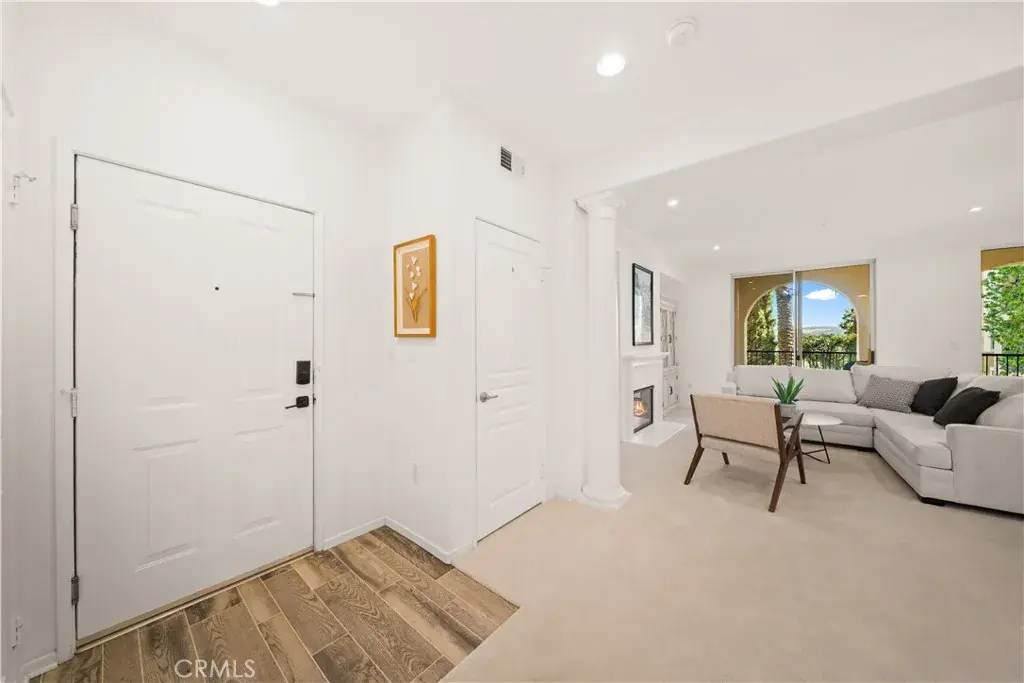 Entering on the second level, you are immediately welcomed by 9-foot ceilings, freshly painted interiors in a soft whisper white, and brand-new carpet throughout the home, creating a bright, clean, and truly move-in-ready living environment. The spacious great room features a cozy fireplace and dining area highlighted by a new chandelier, seamlessly opening to an oversized patio with dual sliding doors—perfect for enjoying morning coffee while overlooking the lush garden, pool, and Nature Preserve views.