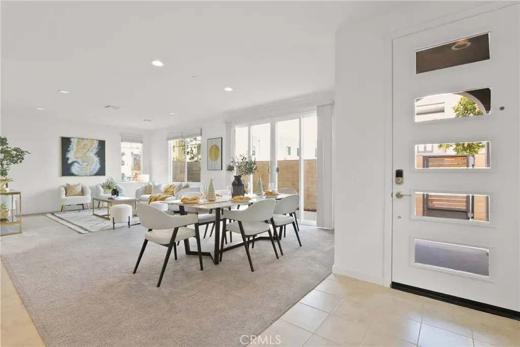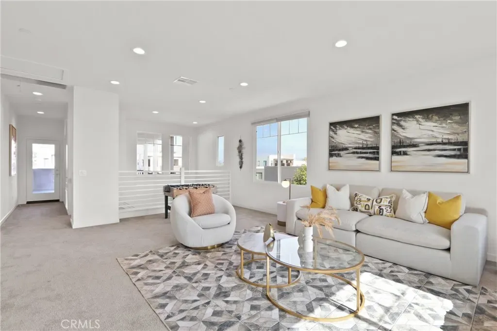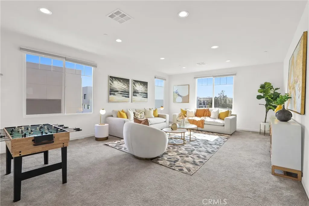 This beautiful townhouses, built in 2019, with only one wall attached, is located in the highly desirable Great Park Modo community of Irvine and features an open floor plan with nearly 10-foot ceilings that create a bright and airy living environment. Upon entry, the upgraded kitchen sits to the left and showcases stainless steel appliances and a walk-in pantry, combining style and functionality, while the living room to the right opens to a private patio through a sliding glass door for seamless indoor-outdoor living. Upstairs, the primary suite offers large windows with neighborhood views and an en-suite bathroom with a generous walk-in closet, while two additional southeast-facing bedrooms provide abundant natural light. The versatile third-floor bonus room can be used as a playroom, office, or media room and features both a private balcony and a spacious deck on opposite sides, perfect for relaxing or entertaining while enjoying community views and glimpses of Saddleback Mountain. Residents of Great Park enjoy access to exceptional amenities including resort-style pools, parks, sports courts, scenic trails, an ice skating rink, and the nearby FivePoint Amphitheatre, with the upcoming Canopy retail and dining hub offering approximately 12 acres of shopping and everyday conveniences. Conveniently located near the Irvine Spectrum, major freeways (I-5, 405, and 133), and within the award-winning Irvine Unified School District.
