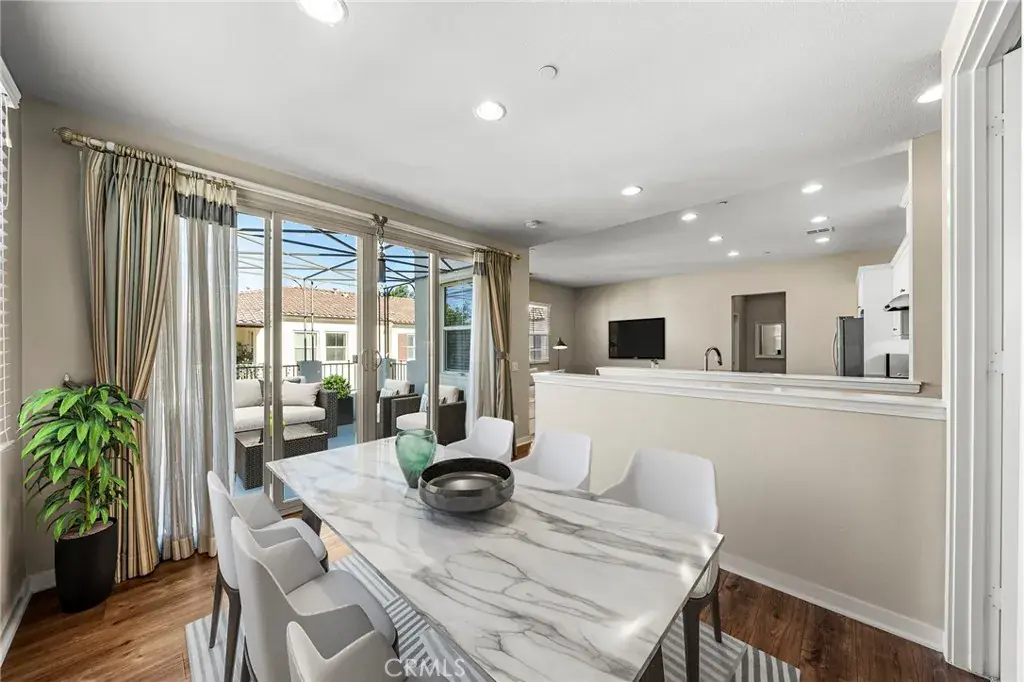 Located in the sought-after Portola Springs community of Irvine, this bright 2-bedroom, 2-bath home features an open floor plan filled with natural light and seamless indoor-outdoor living. The modern kitchen offers a center island, white cabinetry, and stainless steel appliances. The living and dining areas open to a spacious private patio, ideal for relaxing or entertaining.