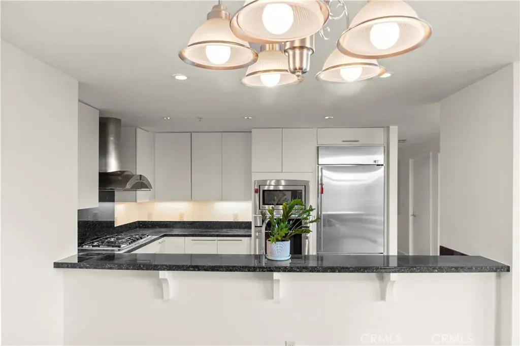 This meticulously maintained unit features TWO spacious BEDROOMS plus AN OFFICE that can easily serve as aTHIRD bedroom. It offers two upgraded full bathrooms and a modern kitchen with granite countertops, stainless steel appliances, and a custom built-in refrigerator. The open-concept layout connects seamlessly to the living area, creating a bright and contemporary atmosphere.