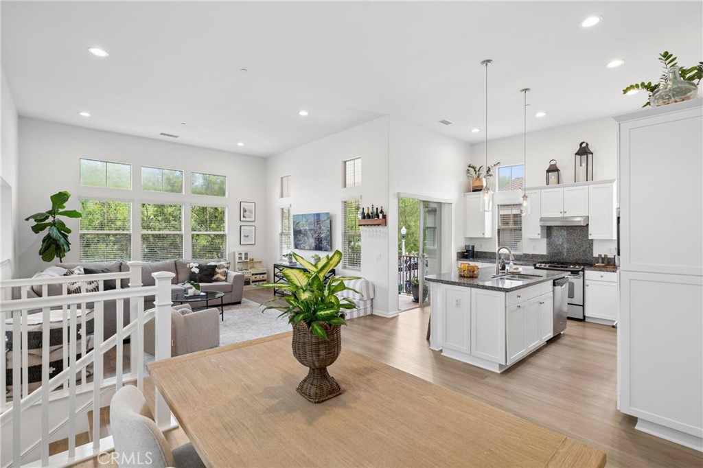 Beautiful 2-bedroom, 2-bath residence offers an ideal blend of comfort and style in a highly sought-after corner townhome in the heart of Woodbury, one of Irvine’s most desirable communities. The light-filled living space with upgraded flooring features a great room and dining area with vaulted ceilings, seamlessly connected to a gourmet kitchen with granite countertops, a large island, and stainless-steel appliances. An idyllic private balcony enjoys tranquil views of the greenbelt and park. The spacious primary suite offers a walk-in closet and an en-suite bath with dual sinks, a soaking tub and glass enclosed shower. Additional features include a generous secondary bedroom, a secondary bathroom with tub, a fully equipped laundry room, an attached 2-car garage with epoxy flooring, spacious entry foyer, and additional storage. Located just steps from Woodbury’s resort-style amenities, including The Commons, multiple parks, 7 private pools, tennis courts, volleyball, soccer and basketball fields, and picnic areas with BBQs. Close proximity to Woodbury Elementary and the community’s vibrant shopping and dining center completes this exceptional offering.