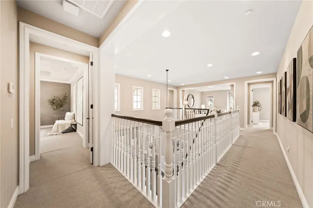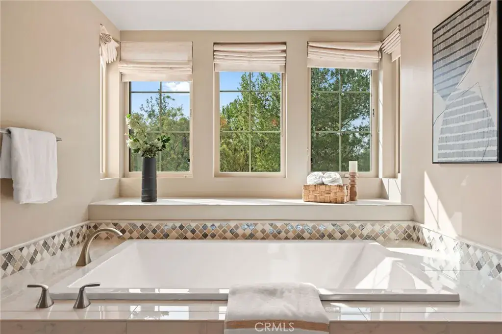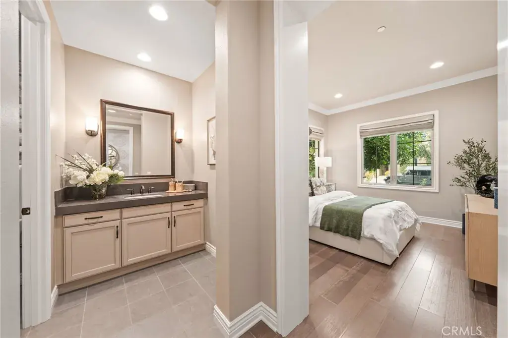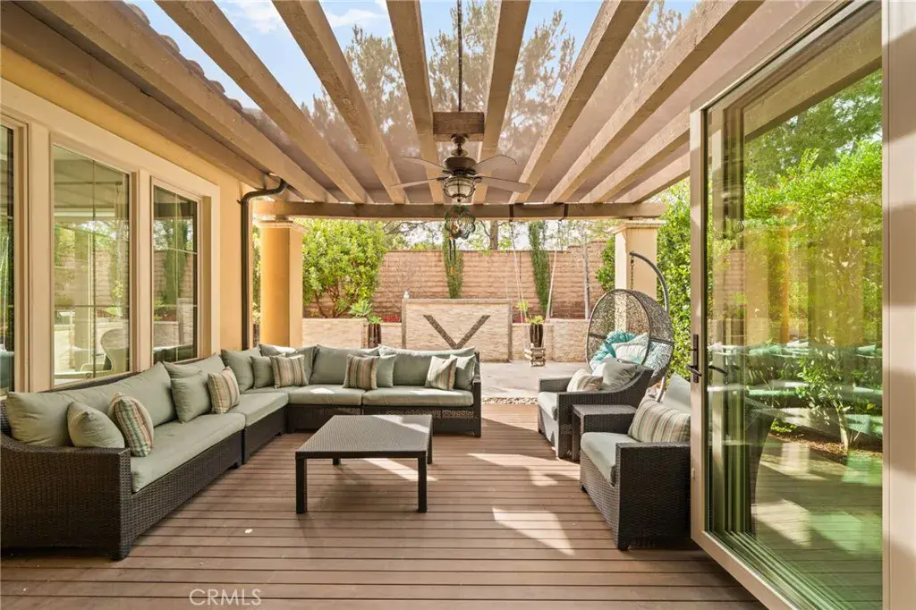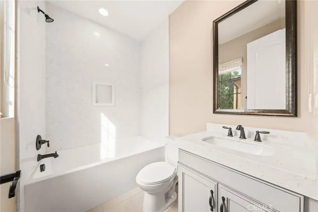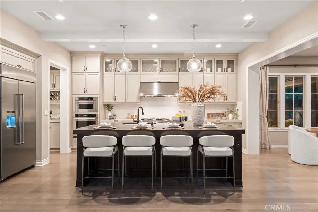 Welcome to Grove at Orchard Hills, a 24-hour guard-gated community in Irvine. This beautifully maintained residence offers 4 bedrooms and 5 bathrooms, featuring two dining areas, multiple living spaces, a fully equipped separate prep kitchen, and an attached 2-car garage, a functional layout designed for both comfortable daily living and effortless entertaining. Upon entry, a main-level bedroom suite with walk-in closet and private bath provides ideal flexibility for guests or multigenerational living. The home opens into a formal dining area, expansive great room, and gourmet kitchen centered around a large island; a separate prep kitchen adds additional cooking space and refrigeration, ideal for entertaining while maintaining a clean main kitchen. The second level functions as a private residential retreat thoughtfully designed for both comfort and practicality. The expansive primary suite serves as a serene sanctuary, featuring multiple windows that create a bright yet peaceful ambiance. The spa inspired primary bathroom includes dual vanities, a soaking tub, and a separate walk-in shower, while two oversized walk-in closets provide exceptional storage, organization, and dressing space rarely found in comparable homes. Two well appointed secondary bedrooms offer excellent natural light and comfortable proportions, including access to a private balcony that enhances airflow and indoor and outdoor continuity. A spacious central loft provides a flexible gathering area ideal for a secondary family room, media lounge, or study space, naturally connecting the upper level living areas. Backyard sliding glass doors connect the interior to a covered California room and professionally upgraded outdoor space featuring custom hardscape, built-in BBQ, fire feature, and decorative water element which creates a private outdoor setting for year-round Southern California living. The home is also equipped with fully paid-off solar panels, offering enhanced energy efficiency and long-term cost savings. Located within one of Irvine’s most prestigious neighborhoods and served by award winning schools, the home is just minutes from Orchard Hills Shopping Center, dining, and major freeway access. Offering a rare balance of luxury, privacy, and convenience, this exceptional residence is not to be missed!