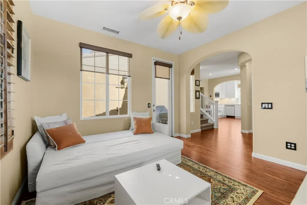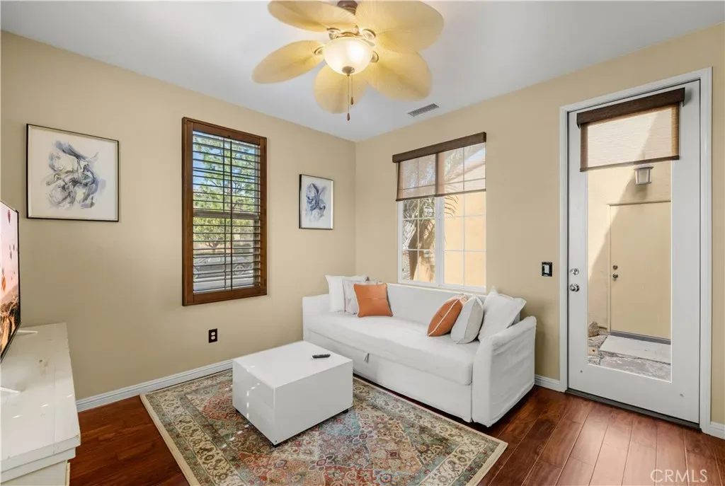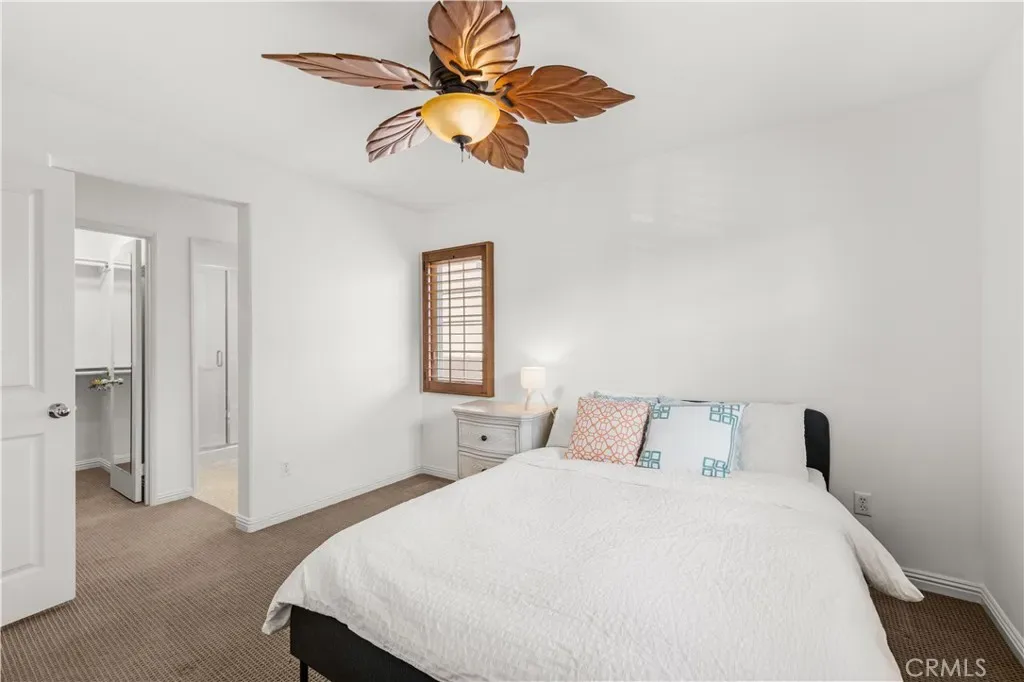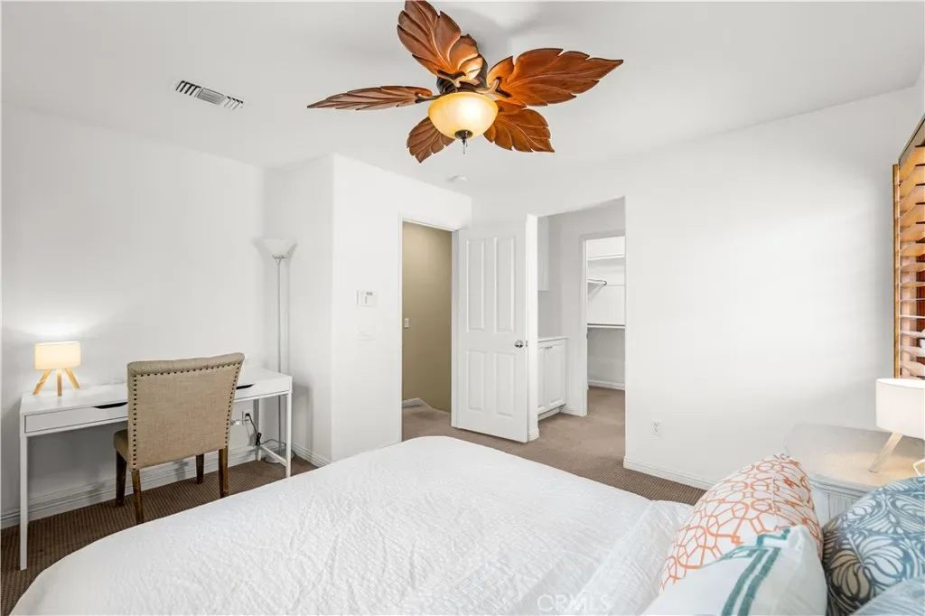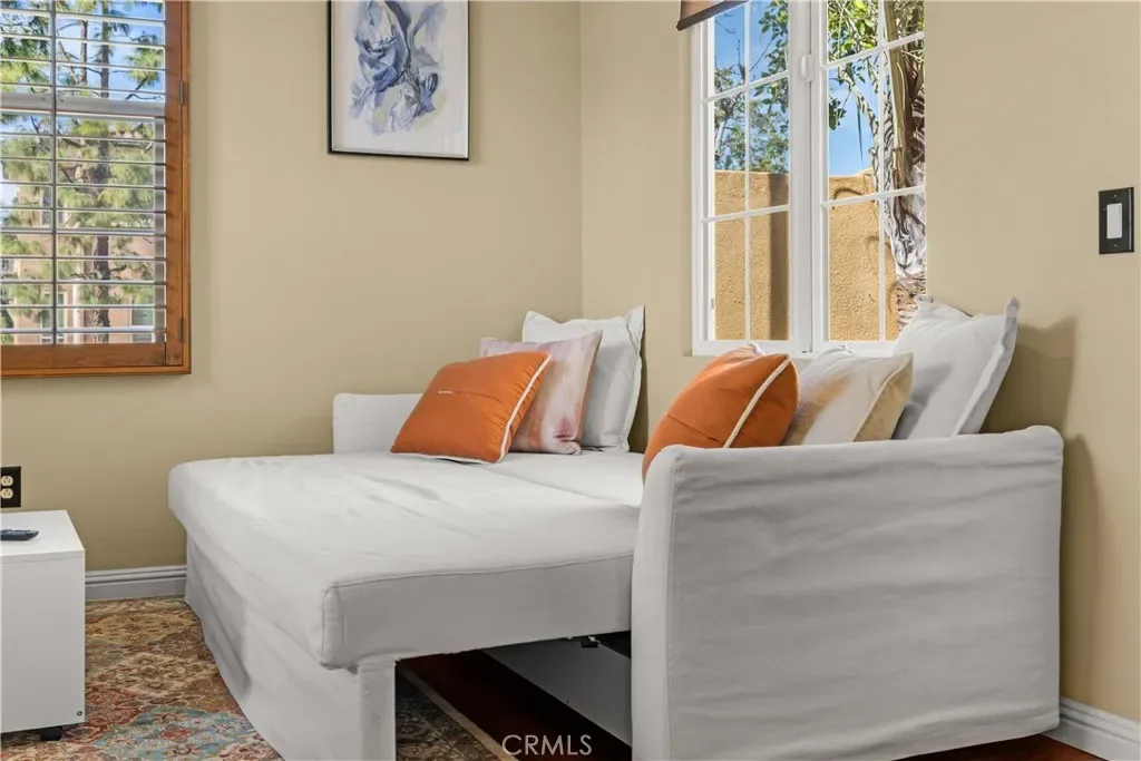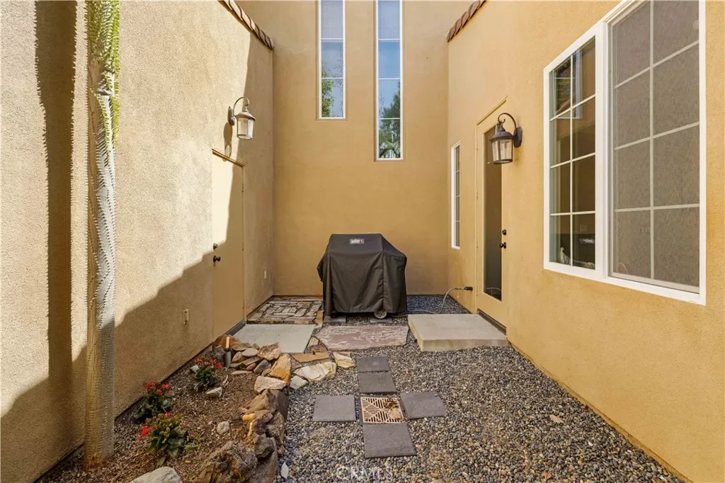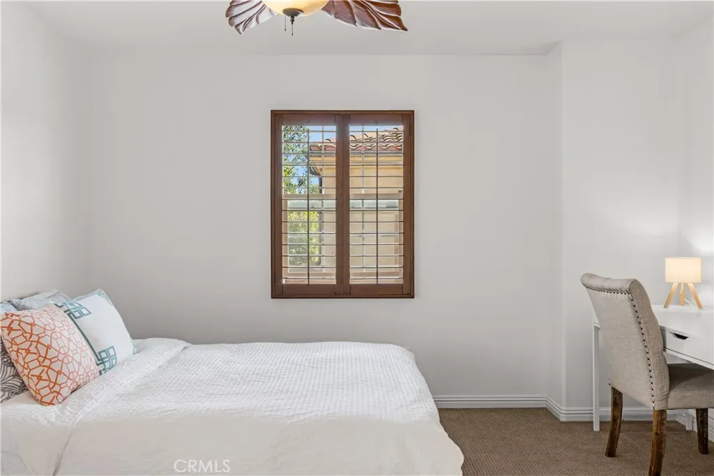 Additional home features include ceiling fans, window treatments that include Bass wood shutters, roller shades and woven blinds. as well as PEX piping throughout, new water heater, Brondell bidet systems in both primary suites with Kohler showerheads, Kohler hardware throughout the home including all faucets with metal drains and downstairs bathroom has a comfort high Kohler toilet. The outdoor stone and pebble patio provides a peaceful, low-maintenance retreat complete with a gas BBQ outlet, Weber grill, and lush Triangle Palm and Ocotillo plants. Some of the energy-efficiencies include Milgard windows, fiberglass insulation between floors, and a roof equipped with a radiant heat barrier for added efficiency.