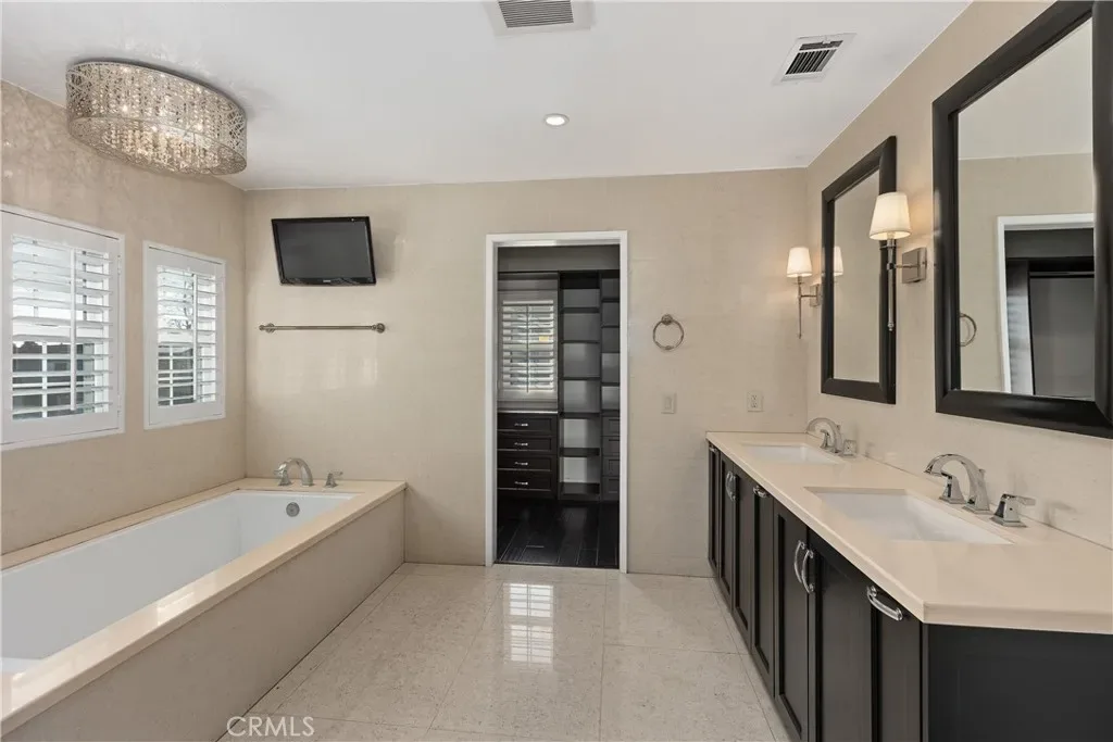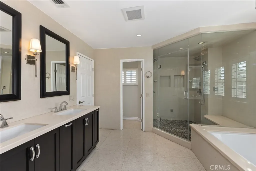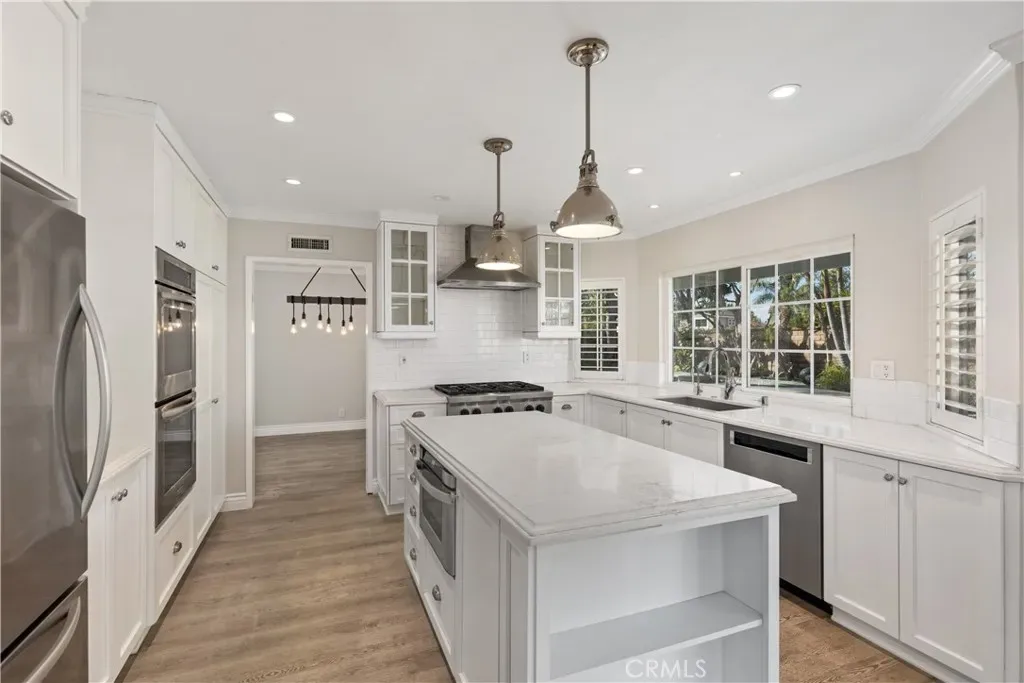 On the hunt for a peaceful retreat where you can enjoy idyllic indoor-outdoor living? Look no further than this spectacular Irvine rental set on a 5,400-sq cul-de-sac lot! This delightful abode features 4 bedrooms, 3.5 baths, and multiple gathering areas. Inside, you’ll find a freshly painted 2,427-sq ft interior accentuated by detailed molding, chic lighting, and a fusion of luxury vinyl plank and dark hardwood flooring. Plantation-shuttered windows and a 5-panel glass slider usher in natural light while connecting seamlessly to the sun-kissed outdoors. Towering palms add seclusion as you relax in the PebbleTec pool and spa. Treat yourself to the kitchen’s stainless steel appliances, double ovens, and exquisite quartz countertops. All bedrooms are on the upper level, including the primary and secondary suites. Additionally, there’s an attached 2-car garage with an EV charging station, built in cabinets, and epoxy flooring. It’s fantastic location is in the highly acclaimed Irvine School District near Northwood High School. Plus, shopping, parks, and freeways are easily accessible. Come take a tour while it’s still available!