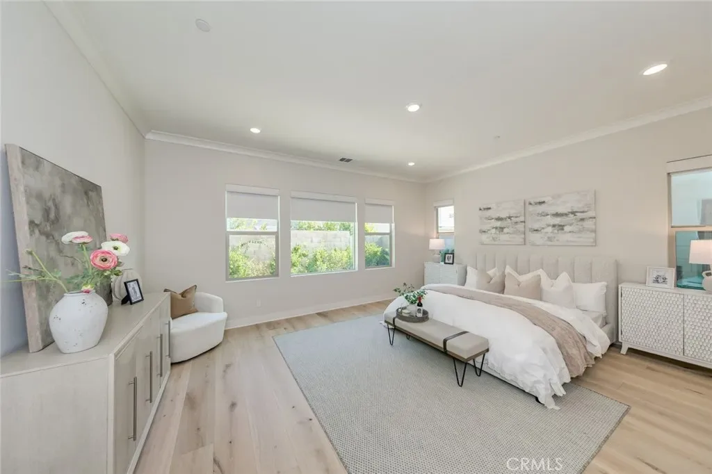 5 BED + 2 Main Master Room (down and up)+ LOFT | GUARD-GATED ALTAIR Stunning two-story home in the prestigious 24-hour guard-gated Altair community. Features 4 bedrooms, 4.5 baths, a spacious loft, and 2 Main Mater Room ideal for a home office and loft . The gourmet kitchen boasts a large island, built-in refrigerator, 6-burner cooktop, and ample cabinets, opening to the dining and living areas for seamless entertaining. First-floor bedroom with en-suite bath is perfect for guests. Upstairs includes a loft, laundry room, two secondary bedrooms, and a luxurious primary suite with dual walk-in closets, soaking tub, and separate shower. Designer upgrades include hardwood floors, crown molding, and plantation shutters. Professionally landscaped backyard provides a private space for outdoor gatherings. Altair offers resort-style amenities including pools, spas, parks, clubhouses, tennis courts, and playgrounds. Conveniently located near Great Park, Woodbury, Irvine Spectrum, shopping, dining, John Wayne Airport, and award-winning Irvine schools.