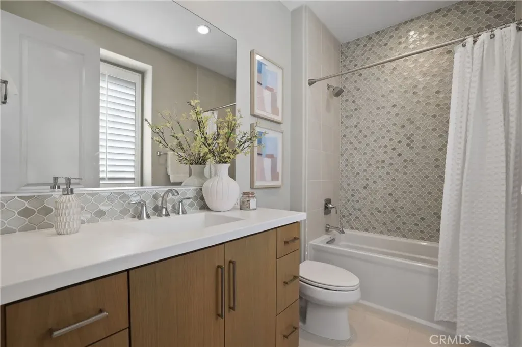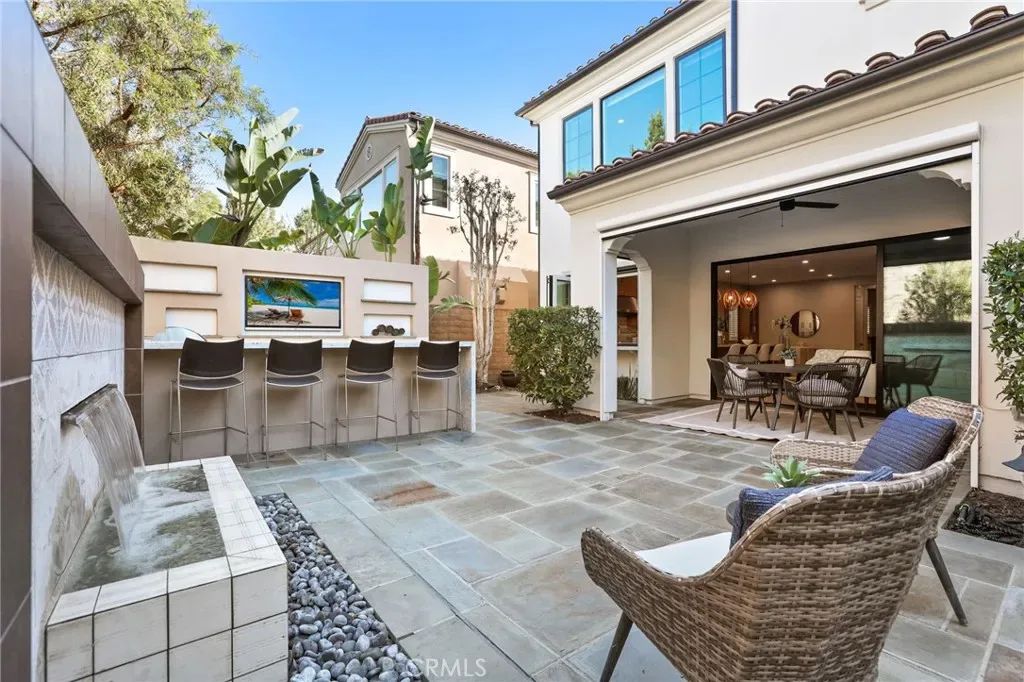 Located in the prestigious 24 hour guard gated community of The Groves at Orchard Hills, this stunning Padova Former Model Home welcomes you with a charming Mediterranean style exterior and manicured landscaping. Step inside to a bright and elegant entryway with stylish staircase and an open hallway that immediately showcases the home’s thoughtful layout. The main living space offers an impressive open-concept design with floor-to-ceiling wood accent wall, expansive tile flooring, and abundant natural light. The gourmet kitchen is a true centerpiece, featuring sleek quartz countertops, a large center island with bar seating, stainless steel appliances, custom wood cabinetry, and designer pendant lighting. The kitchen flows effortlessly into the dining area and the spacious great room, creating the perfect setting for entertaining and everyday living. The inviting great room features a modern fireplace with custom built-in shelving and accent wall, providing both warmth and architectural character. Large sliding glass doors open to the backyard, allowing for seamless indoor-outdoor living. A downstairs room provides flexibility for guests, a home office, or additional living space. Upstairs, a spacious open loft provides a versatile secondary living area ideal for a media room or study space. The luxurious primary suite offers a serene retreat with abundant natural light and tranquil views. The spa-inspired primary bathroom features dual vanities, a soaking tub, and a spacious walk-in shower with elegant stone finishes. Two additional guest bedrooms are generously sized and complemented by beautifully appointed secondary bathrooms. The resort-style backyard is truly an entertainer’s dream. A covered California Room with a sleek built-in fireplace offers a comfortable outdoor lounge, while the expansive stone patio creates multiple seating and gathering areas. The space is highlighted by a custom water feature, lush landscaping, and a fully equipped outdoor kitchen with BBQ and bar seating, perfect for hosting unforgettable gatherings. Community amenities include swimming pools and Jacuzzi, club house, BBQ, tennis courts and parks. Fabulous Orchard Hills Shopping Center and Award-winning Orchard Hills School are just minutes away. This beautiful home won’t last and is sure to please!