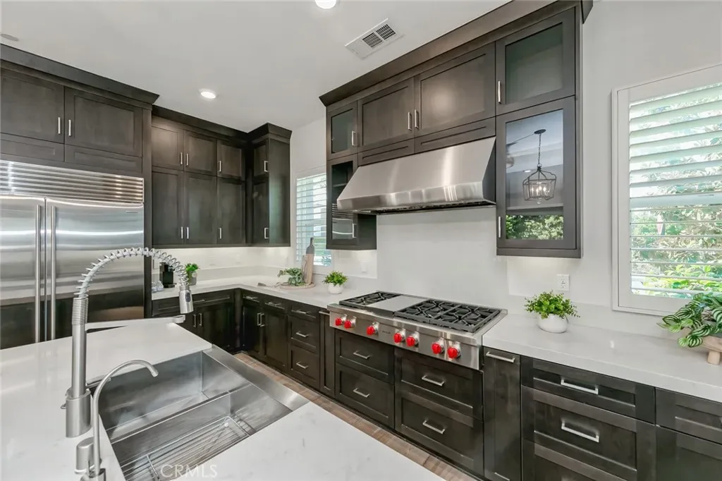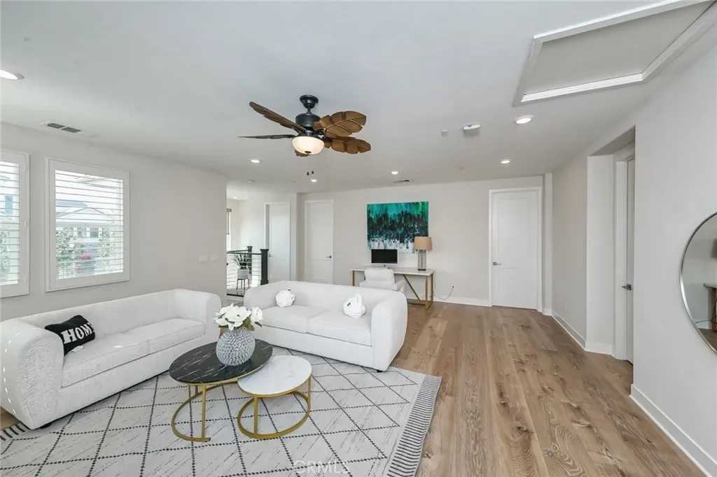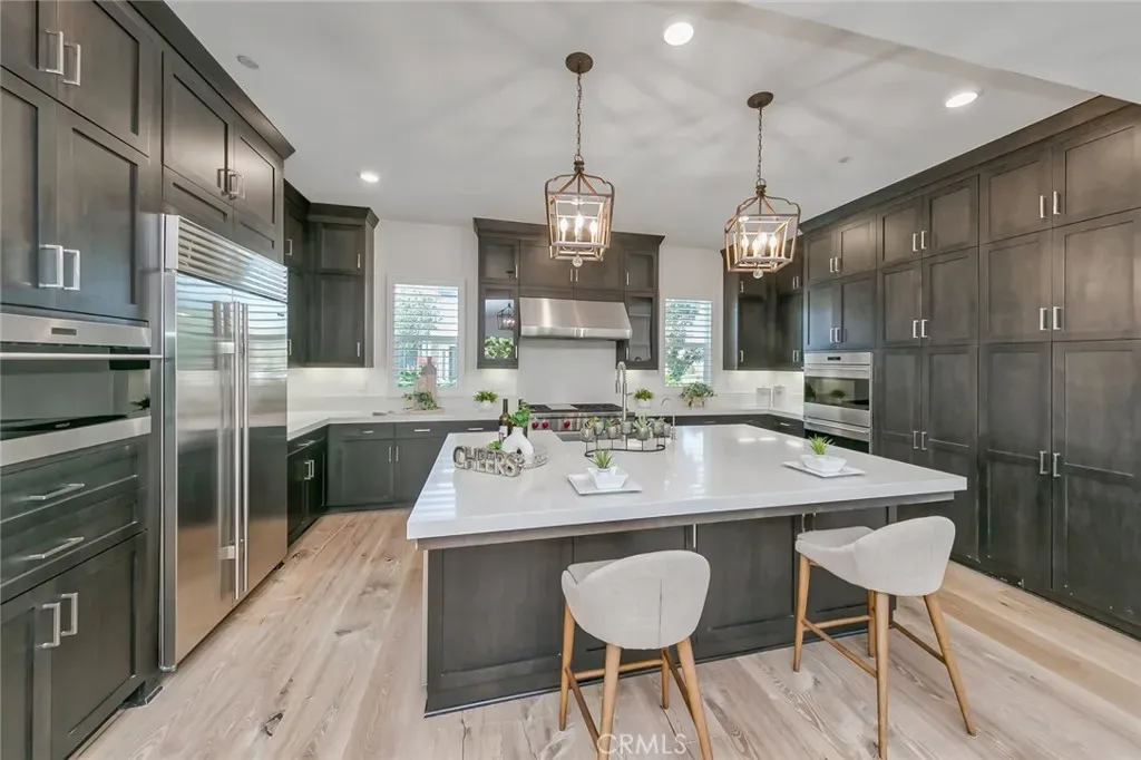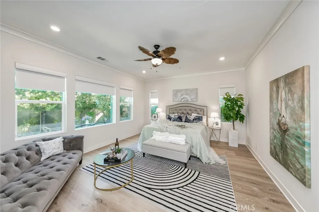 Stunning two-story home in the prestigious 24-hour guard-gated Altair community. Features 4 bedrooms, 4.5 baths, a spacious loft, and 2 Main Mater Room ideal for a home office and loft . The gourmet kitchen boasts a large island, built-in refrigerator, 6-burner cooktop, and ample cabinets, opening to the dining and living areas for seamless entertaining. First-floor bedroom with en-suite bath is perfect for guests. Upstairs includes a loft, laundry room, two secondary bedrooms, and a luxurious primary suite with dual walk-in closets, soaking tub, and separate shower. Designer upgrades include hardwood floors, crown molding, and plantation shutters. Professionally landscaped backyard provides a private space for outdoor gatherings. Altair offers resort-style amenities including pools, spas, parks, clubhouses, tennis courts, and playgrounds. Conveniently located near Great Park, Woodbury, Irvine Spectrum, shopping, dining, John Wayne Airport, and award-winning Irvine schools.