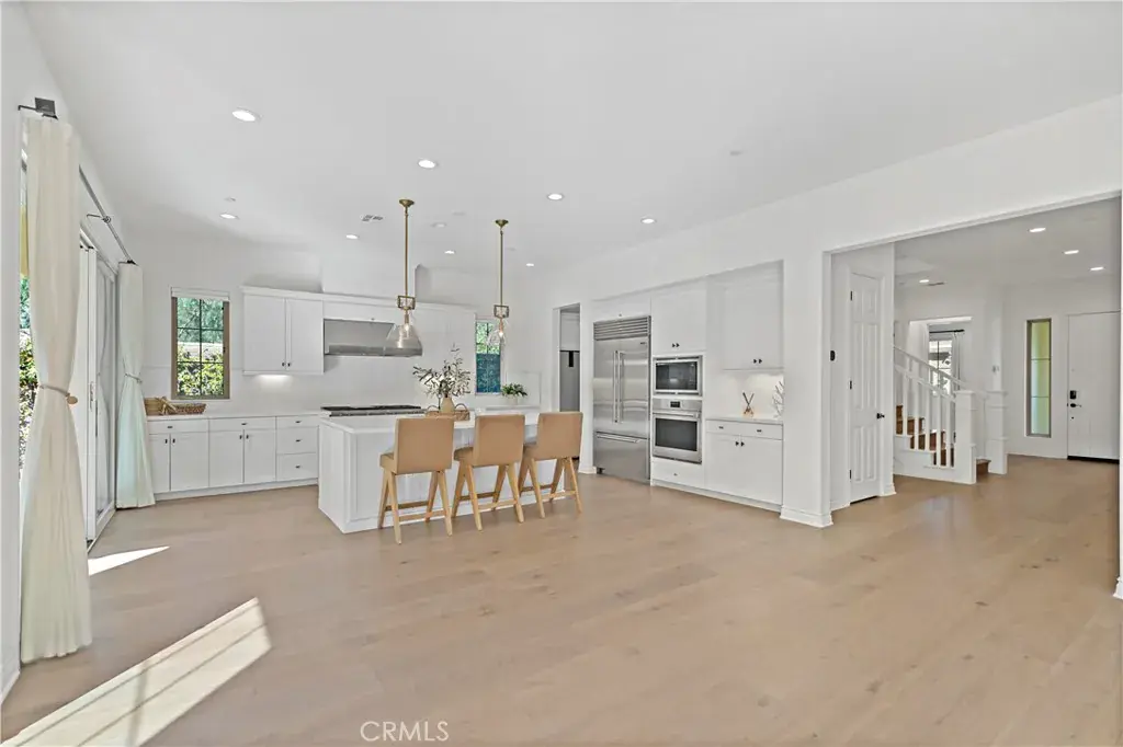 Located in the prestigious 24-hour guard-gated Orchard Hills the Groves, this prime corner-lot home offers 4,075 sqft with 4 bedrooms and 4.5 bathrooms. The second-floor loft offers flexibility and can be upgraded to a home office or fifth bedroom with closet. The home features luxury engineered hardwood flooring throughout, a spacious living room with fireplace, and large sliding doors for seamless indoor-outdoor living. The chef’s kitchen is equipped with WOLF and SUB-ZERO appliances, plus a separate prep kitchen with extra appliances and oversized pantry. The luxurious primary suite is nearly double the size of secondary bedrooms and offers peaceful trail views. All the bedrooms have en-suite bathrooms, including one bedroom on the first floor. Enjoy a decent-sized backyard finished with Italian porcelain tile and a California Room large enough for a 10-seat dining table, perfect for Southern California outdoor living. Additional highlights include paid-off solar, EcoWater softener, Tesla EV charger, and PHYN smart water monitoring system. Community amenities include a clubhouse, two pools, spa, tennis and basketball courts, playgrounds, and scenic hiking trails.