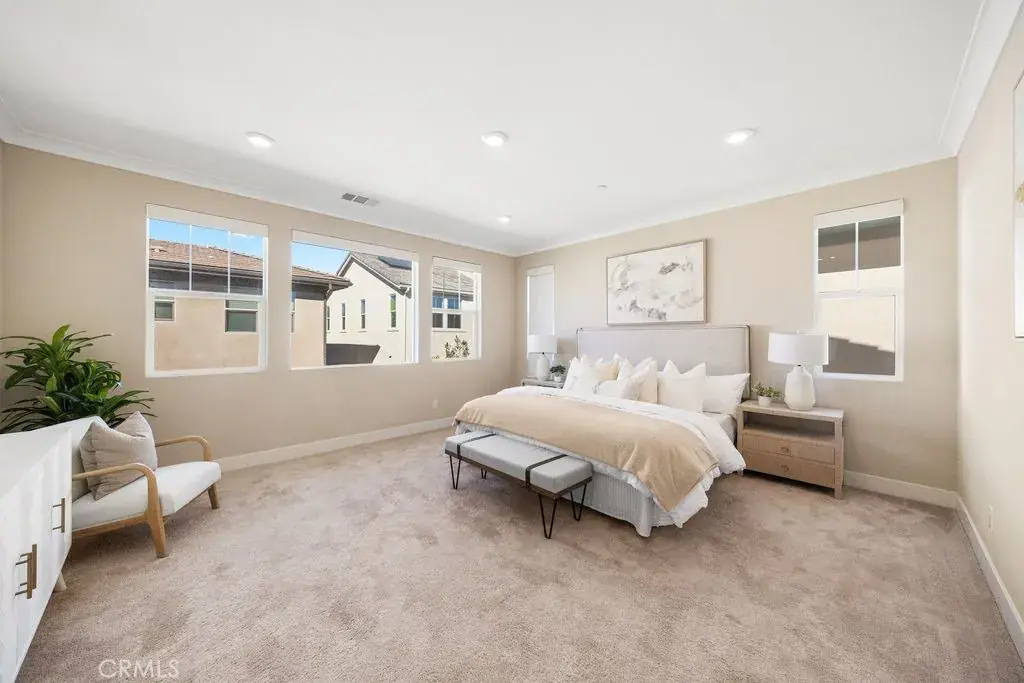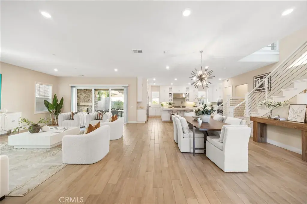 Located in the highly desirable Altair community, this beautifully maintained home offers resort-style living with three community pools, tennis courts, scenic hiking trails, and 24-hour guarded security. The home features an open-concept floor plan with granite countertops and wood-look tile flooring throughout. The main level includes one bedroom with full bath, one office and a half bathroom, an ideal for guests or multi-generational living. Upstairs offers three additional bedrooms and a spacious loft/den, perfect for a media room, home office, or family lounge. The primary suite is generously sized and includes dual sinks and a large soaking tub. Conveniently located near Portola High School and Woodbury Town Center. Solar was paid off.