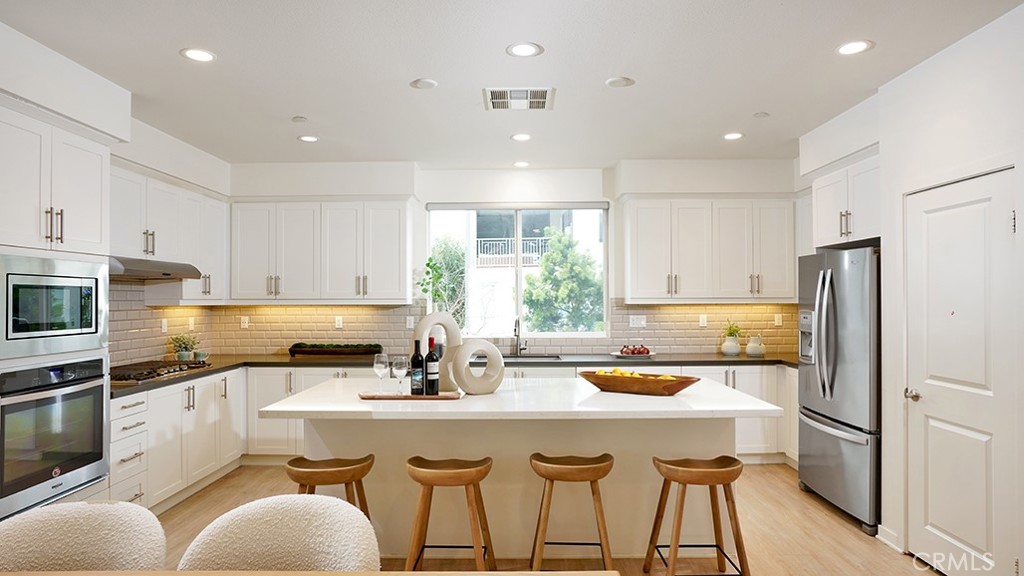 Situated on a premium corner lot within the highly sought-after Great Park community of Irvine, this beautifully appointed residence offers the perfect blend of modern design, functionality, and lifestyle convenience. Thoughtfully designed, the home features four bedrooms and three-and-a-half baths, including a desirable main-level bedroom with its own ensuite bath, ideal for guests, a private office, or added flexibility. The second level showcases a bright, open-concept layout where the kitchen, dining area, and living room seamlessly connect to create an inviting central gathering space. Expansive windows flood the interiors with natural light, while the living room extends effortlessly onto a generous private balcony, perfect for indoor-outdoor entertaining or quiet relaxation. Upstairs on the third level, three spacious bedrooms include a well-appointed primary suite featuring a luxurious ensuite bath with dual sinks and a separate shower. An adjacent laundry room adds everyday convenience. Recessed LED lighting enhances the home throughout. Residents enjoy walking-distance access to an array of resort-style community amenities, including a pool, spa, BBQ areas, clubhouse, and the beautifully designed Parasol Park. The surrounding area is rich with recreation, offering nearby water parks, tennis courts, soccer fields, Great Park Ice & FivePoint Arena, and more. Located within the coveted Irvine School District, this exceptional home presents a rare opportunity to experience comfort, style, and community in one of Orange County’s most desirable settings.