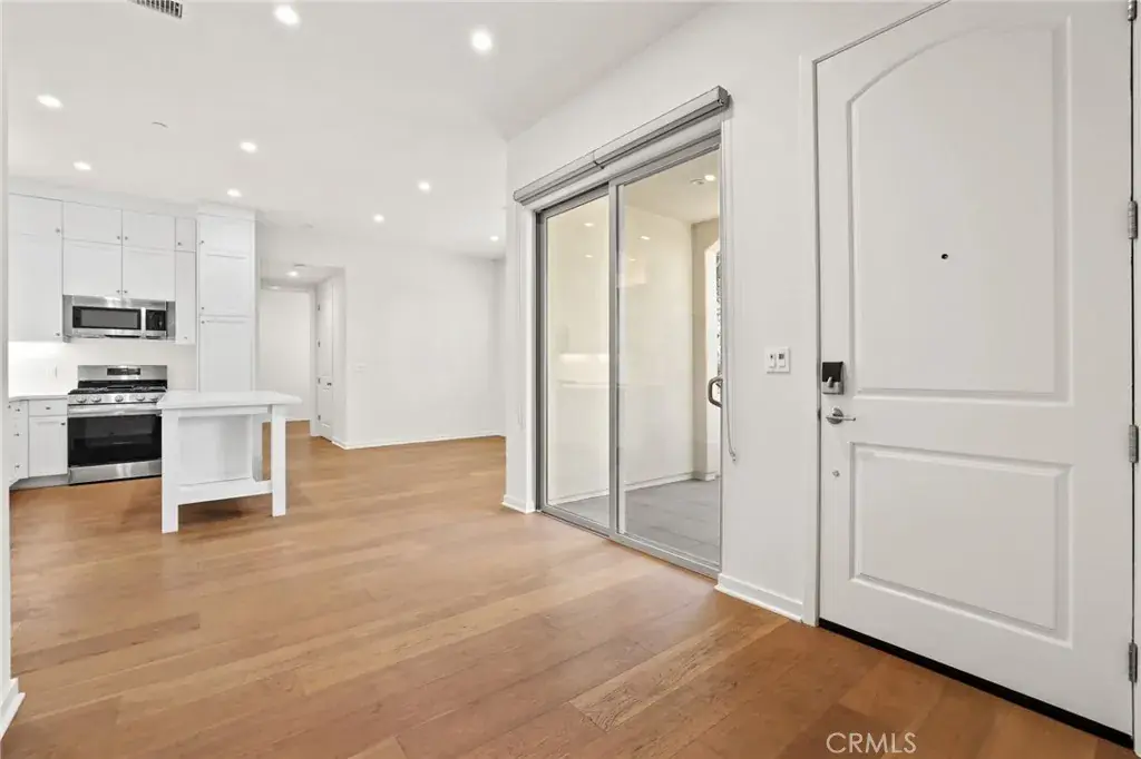 Discover refined living in this stunning former model home single-level luxury condo, featuring 2 bedrooms and 2 bathrooms. Step outside to serene landscaping and enjoy your private patio, perfect for relaxing. Inside, an open-concept layout boasts soaring ceilings, expansive windows, and premium finishes like hardwood floors and custom lighting. The gourmet kitchen impresses with high-end stainless steel appliances, quartz countertops, and an island ideal for entertaining. The master suite offers a tranquil retreat with a walk-in closet and a spa-inspired ensuite, complete with dual sinks and a frameless glass shower. The versatile second bedroom, perfect as a guest room or home office, is paired with a stylish second bathroom. Owned solar and attached two-car garage equipped EV charger. Nestled in a prestigious community, enjoy access to lush parks, private pools, spas, clubhouses, sports courts, playgrounds, picnic areas, and scenic walking/biking trails. This condo effortlessly combines elegance and comfort.