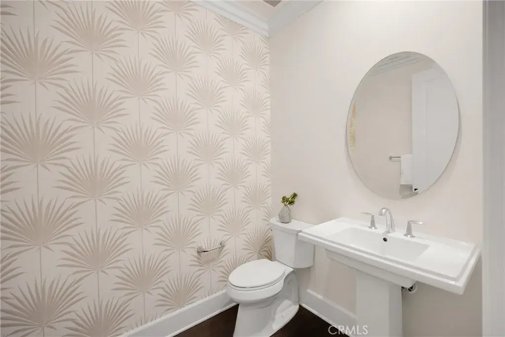 The high-ceiling stairway leads to a versatile loft space. The bedrooms are all en-suite, are uniquely spacious, and designed with privacy in mind. The luxurious primary suite features an enlarged dream walk-in closet with checkered flooring, that attaches directly to the private office. A freshly renovated spa-inspired bathroom, dual vanities, and an additional walk-in closet completes the space.