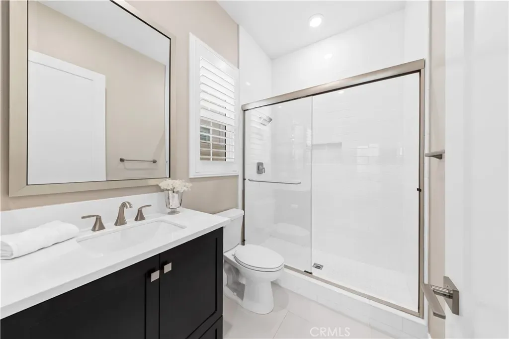 Designed with both privacy and functionality in mind, every bedroom features its own en-suite bathroom and walk-in closet—offering a rare level of convenience for both residents and guests. The primary suite serves as a private retreat, complete with dual walk-in closets—one enhanced with custom built-in shelving—and a recently upgraded spa-inspired bathroom featuring elegant tile work and refined finishes.