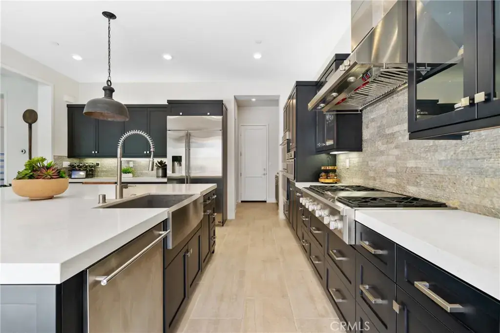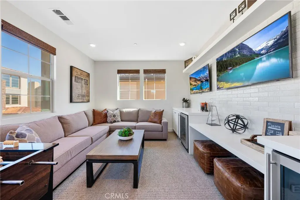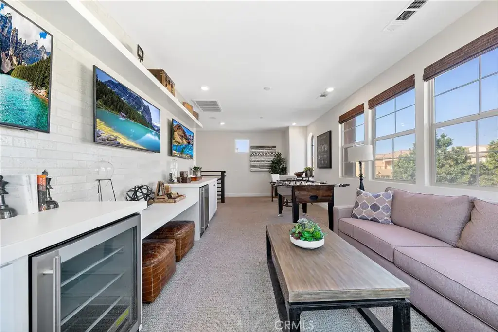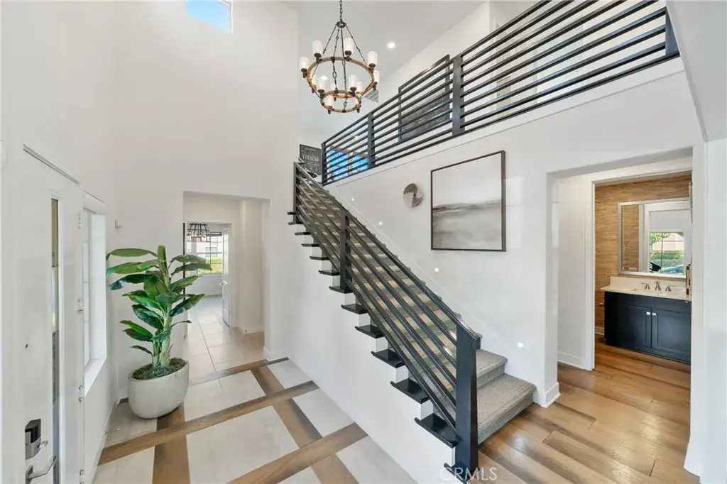 Don’t miss this rare opportunity to own a beautiful former model home in 24-hour guard gated resort community of Altair. This model home is a detached single family house and the land use is condo. It has luxury upgrades throughout and is close to brand new condition. This must-see house is an ideal one that everyone loves. It comes with smart home features electric roller shields. First floor includes a convenient bedroom and a full bathroom. Second floor loft has a build-in bar comes with 2 wine coolers and that area can be converted to a 2nd family room. office or media zone with ceiling speakers installed. Outdoor retreats with covered California room with fireplace. Backyard has water feature design with three fountains and a sitting area with an unique modern design ground fire pit. Property is walking distance to clubhouse and is located just across street from top rated Portola high school.