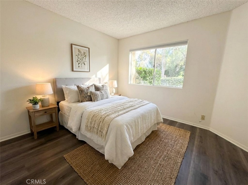 Charming three-bedroom, three-bathroom townhouse located within walking distance to UC Irvine and the University Shopping Center. The floor plan includes one bedroom and full bathroom on the main level, along with two primary suites upstairs, each with its own en-suite bathroom. Vaulted ceilings enhance the living area, as well as laminate and tile flooring throughout. The kitchen features stunning white cabinetry, quartz-style countertops, and appliances including a new electric stove, new microwave, dishwasher, and refrigerator. Indoor laundry with washer and dryer included, along with central heating and air conditioning. The property includes a private enclosed patio accessible from the main living area. Parking for up to three cars included. Amenities include pools, basketball courts, tennis courts, BBQ areas, and parks. Located within the University High School district of the award-winning Irvine Unified School District. Some images have been virtually staged for illustrative purposes only.