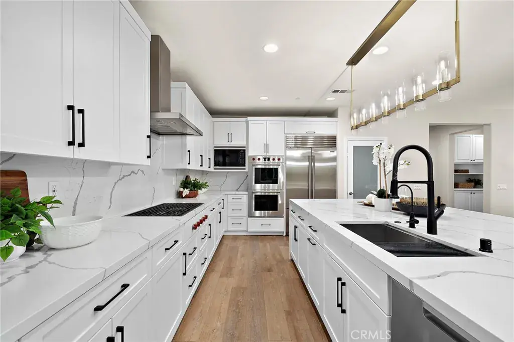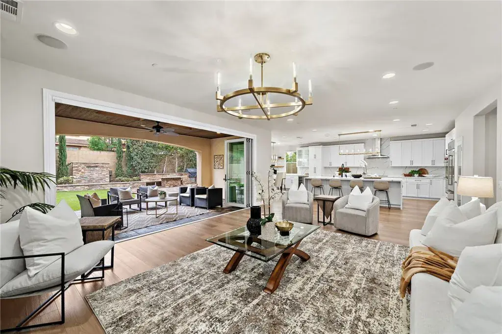 Within the thoughtfully designed and highly sought-after Great Park community, this tastefully upgraded home offers an exceptional blend of refined luxury, modern functionality, and effortless California living. Encompassing over 3,400 square feet, the five-bedroom, five-and-a-half–bathroom home is set on a welcoming lot and showcases designer upgrades throughout. At the heart of the home lies a beautifully curated great room, where the chef’s kitchen seamlessly connects to the living and dining areas—an ideal environment for both daily living and sophisticated entertaining. Appointed with Wolf and Monogram appliances, refined cabinetry, and expansive preparation space, the kitchen is as functional as it is striking. A retractable multi-pane glass slider off the living room opens to the California room, creating a true indoor-outdoor experience perfectly suited for dining, relaxing, or hosting gatherings year-round. The main-level bedroom with its own en-suite bathroom provides exceptional flexibility, ideal for guests, multi-generational living, or a private home office. The three-car tandem garage is equally impressive, upgraded with epoxy flooring, built-in cabinetry, and showroom-style lighting. Upstairs, three generously sized secondary bedrooms and a spacious loft offer abundant room for family life, work, or play. The primary suite is a luxurious retreat, notable for its expansive proportions, spa-inspired bathroom with separate soaking tub and shower, and an impressively large, fully organized walk-in closet—an indulgent sanctuary designed for comfort and relaxation. Residents of Great Park enjoy access to world-class amenities exclusive to the community, including expansive parks, 21 pools and spas, bocce ball courts, basketball and volleyball courts, club rooms, barbecue and picnic destinations at every park, and a community greenhouse. Ideally located within the award-winning Irvine Unified School District—zoned for Portola High School and Beacon Park K–8—and just minutes from Woodbury Town Center, FivePoint Amphitheatre, Irvine Spectrum, John Wayne Airport, Kaiser Permanente, and major connecting freeways (I-5, 241, 133, and 73). An exceptional opportunity to live beautifully in one of Irvine’s most celebrated communities.
