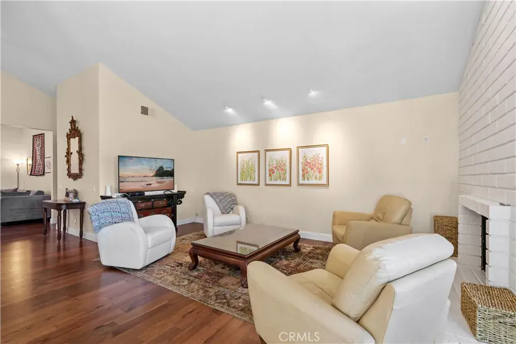 Beautifully remodeled home on a private cul-de-sac, offering panoramic views of the golf course, pond, city skyline, and sunsets, perfectly situated near the 6th and 7th fairways. Through the front gate is a courtyard featuring a fountain and rock waterfall. Inside the front door is an open room, illuminated by a skylight, that flows into the main living spaces, making it ideal for a playroom or guest area. This home has an open floor plan with cathedral ceilings and recessed lighting, enhanced by dual-pane windows that fill the space with natural light. Beautiful hardwood flooring throughout (with tile flooring in kitchen, bathrooms and laundry area). The living room seamlessly connects to the dining area and the gourmet kitchen, complete with Quartzite countertops and custom cabinetry. Sliding glass doors from both the dining room and kitchen lead to separate outdoor decks, perfect for relaxing amid lush greenery. The primary bedroom features a sliding glass door that opens to a back patio with amazing golf course views. It also includes a spacious ensuite bathroom with two vanity areas, each with its own sink and cabinets, a walk-in shower, and a privacy door to the toilet. The second back bedroom offers wide-open golf views and can easily serve as an office. Each bedroom is thoughtfully equipped with a ceiling fan for added comfort. Enjoy the convenience of a finished storage area, accessed through the downstairs front bedroom walk-in closet. The kitchen, main floor bathroom, and primary bathroom were all beautifully remodeled four years ago, while dual-pane windows were installed three years ago. Recent upgrades also include a new roof and tenting completed in early 2023. Other benefits include a direct-access two-car garage with EV charger, indoor laundry area, and access to two community pools and spas. Association dues cover water, trash, and exterior maintenance. Situated within the acclaimed Irvine School District, including University High, this home is just minutes from UCI, William Mason Park, John Wayne Airport, Newport Beach, and Fashion Island. This remodeled home, with spectacular golf course views, offers a turnkey resort-style living experience!