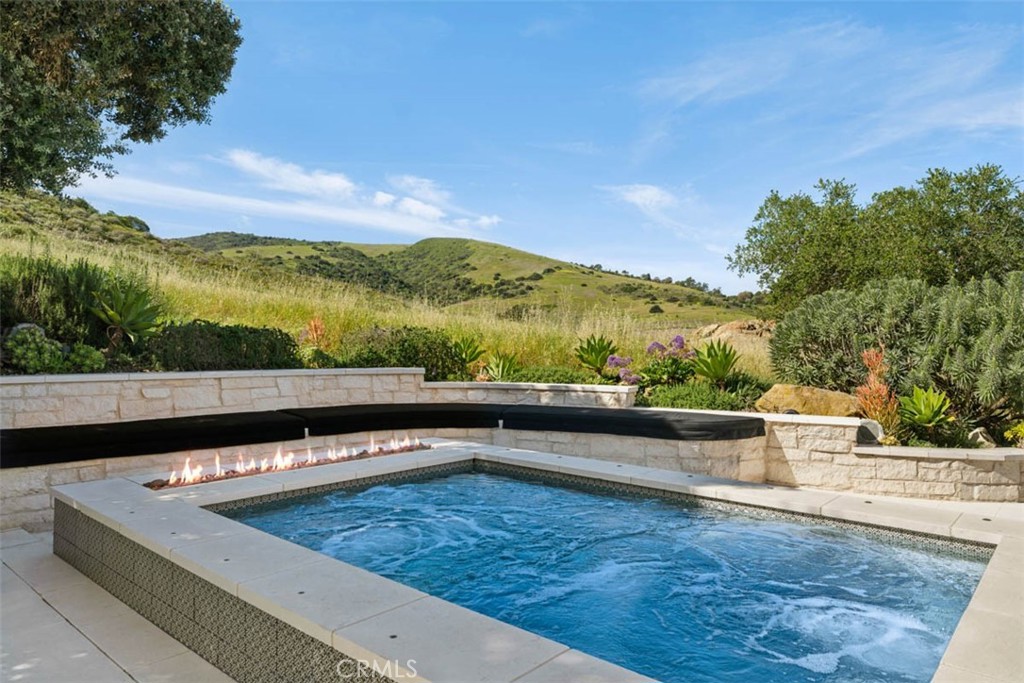 Outdoors, the design embraces the atmosphere. A large pool and spa sit low against the horizon, while barbecue, dining, fire pit and lounge areas offer resort style living, set beneath a pergola and open sky showcasing the breathtaking views reminiscent of Tuscany. As the light shifts, the property takes on a cinematic quality, with colorful sunsets setting the surrounding hillsides aglow at dusk.